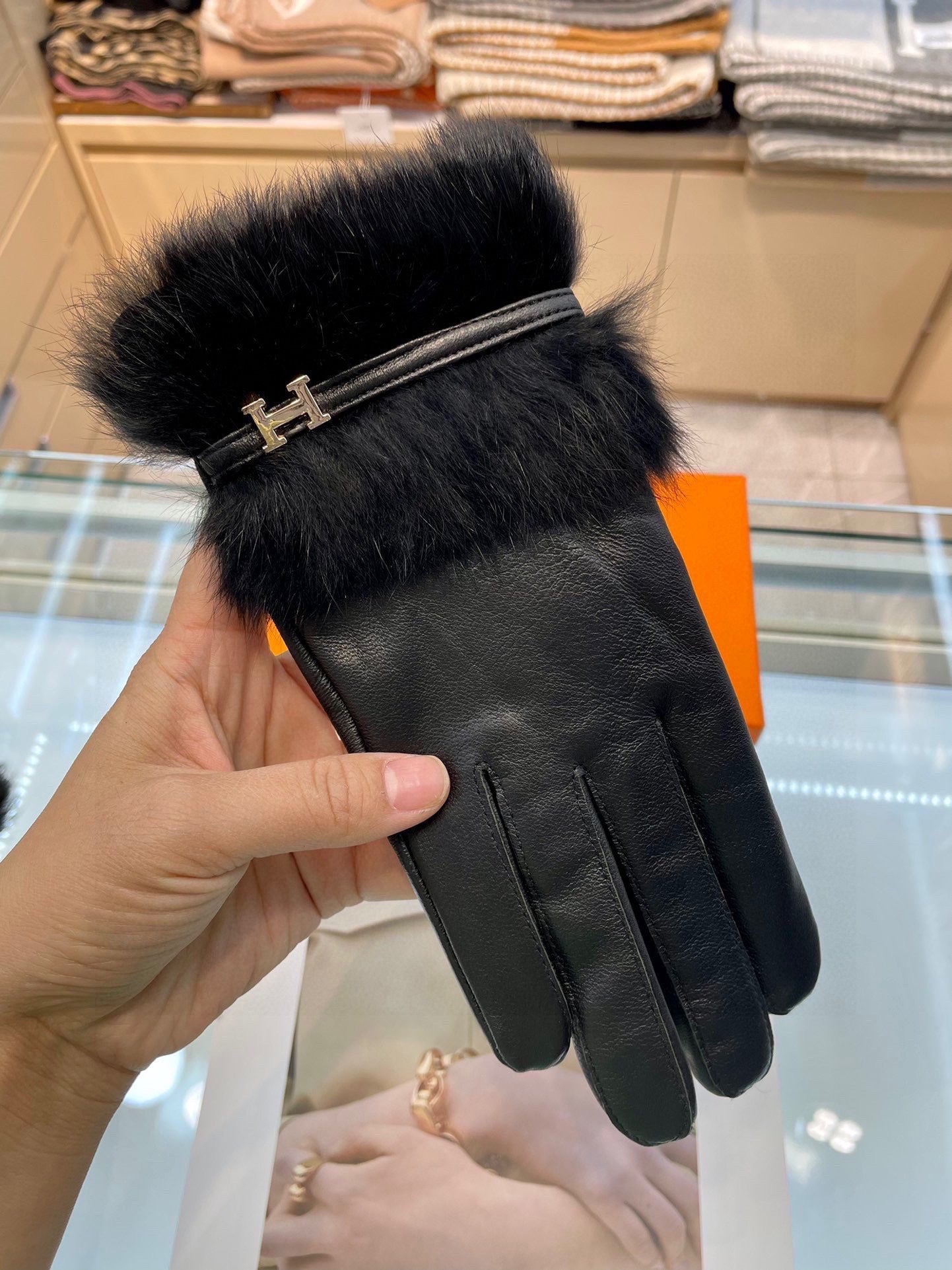 GLOVES WITH H LETTER IN BLACK SHEEPSKIN AND LAMB FUR 409344