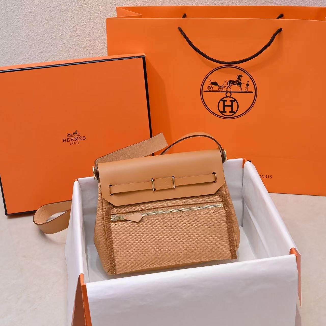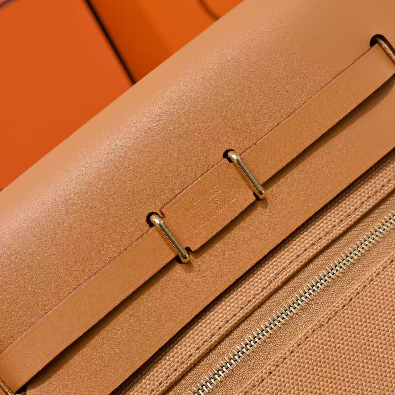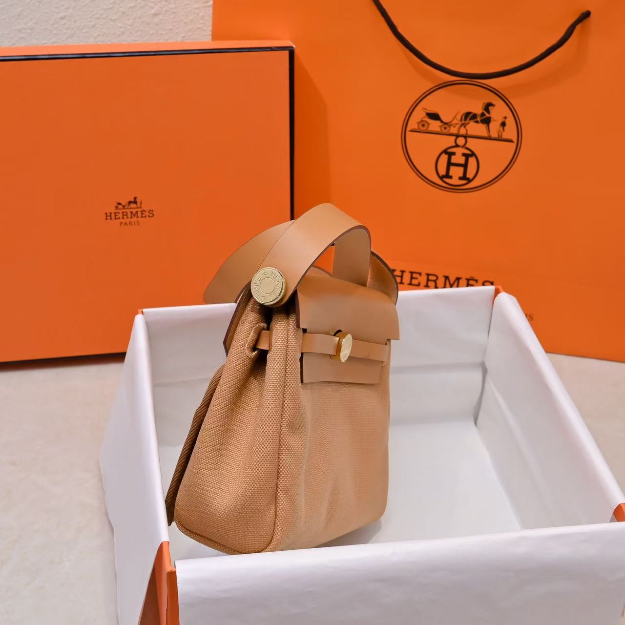 HM Mini Herbag Gold Buckle 20 Straw Canvas and Hunter Cowhide