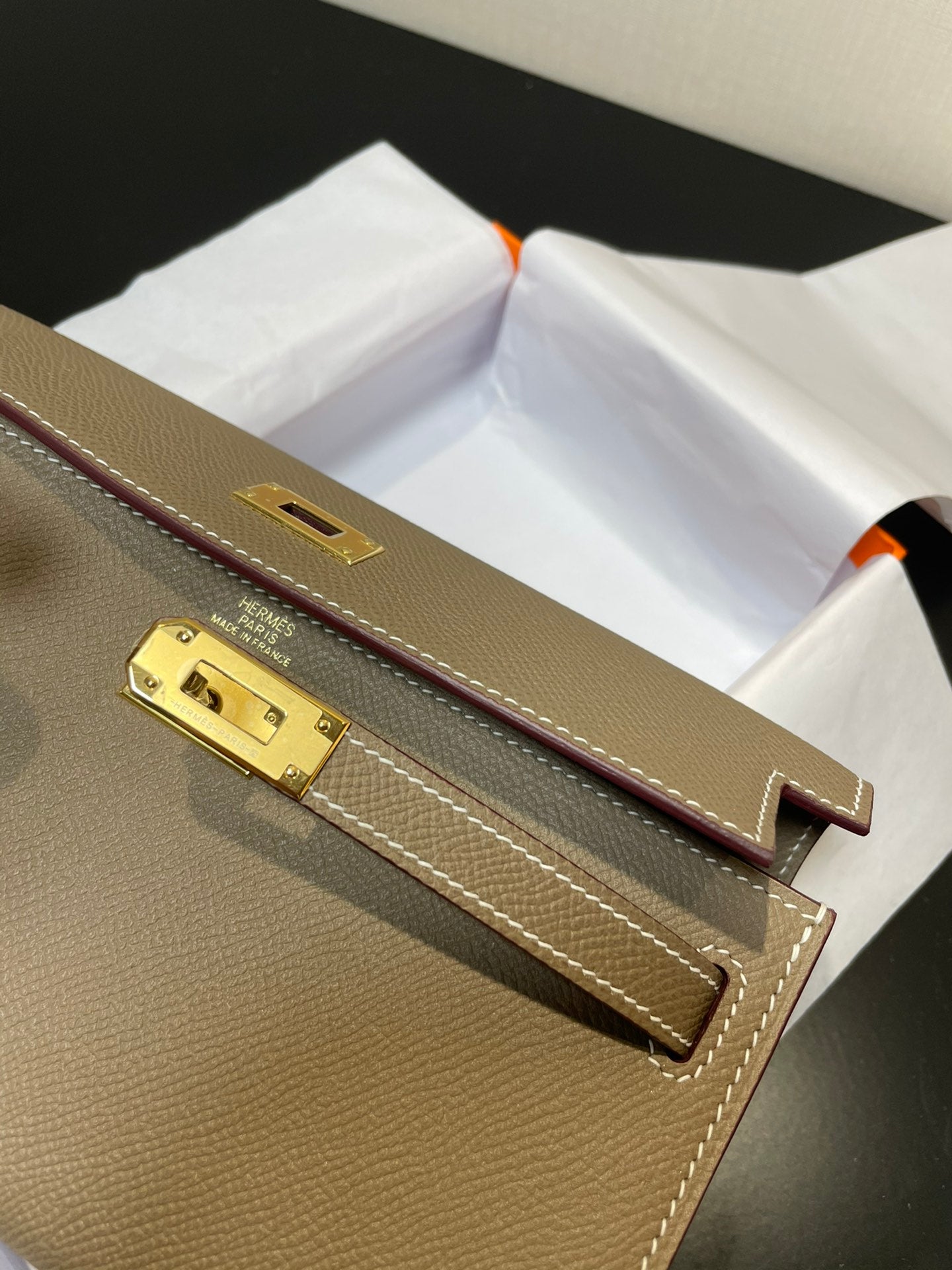 kelly woc 20.5 etoupe epsom gold hardware