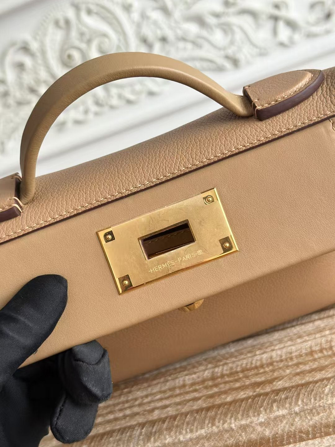 Hermes Mini 24 24 Bag Beige Gold Leather
