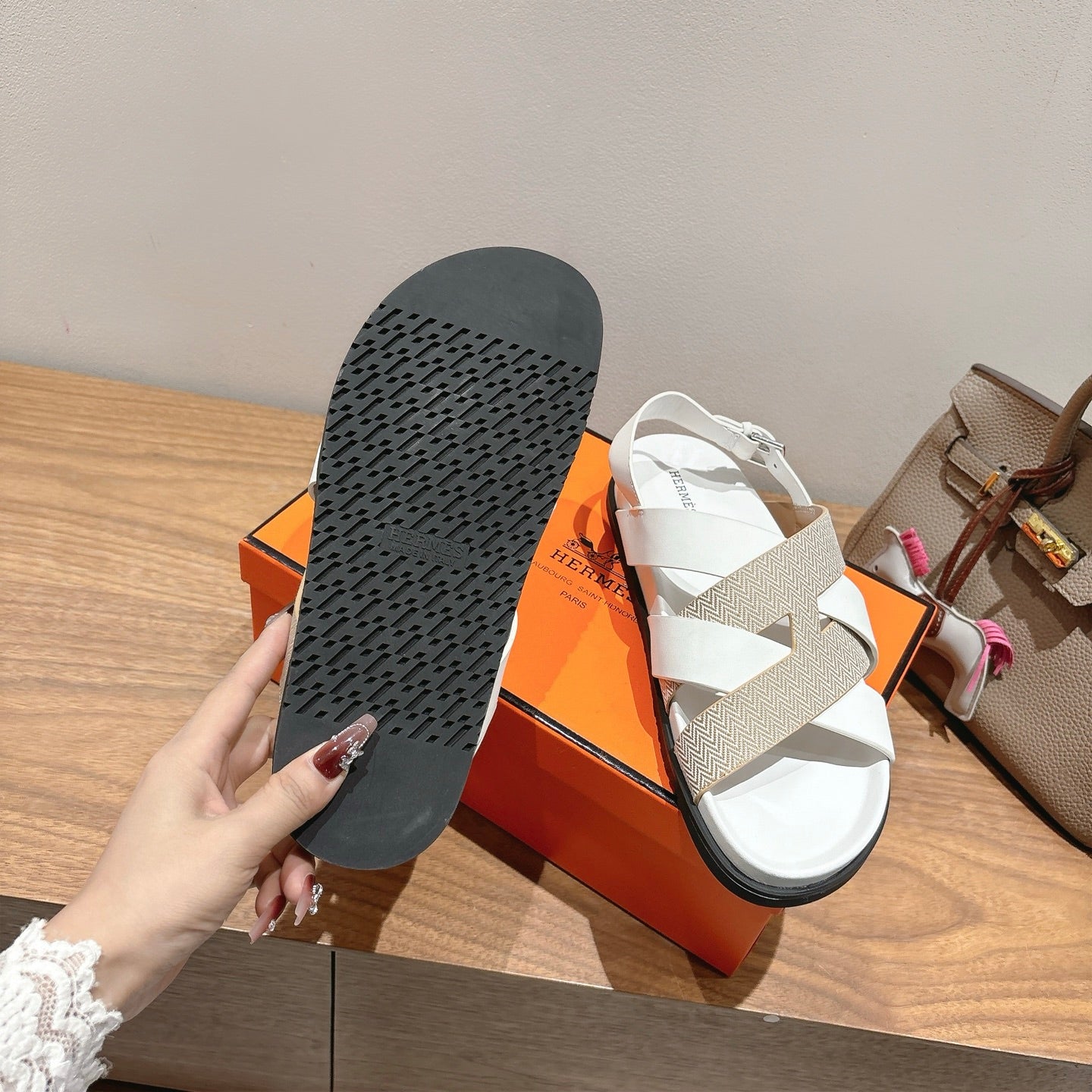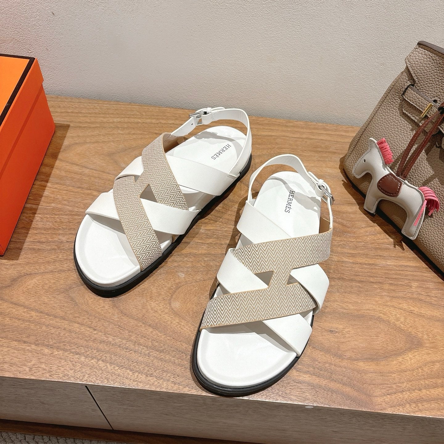HM 25 Heracles Sandal White Calfskin Nude Canvas