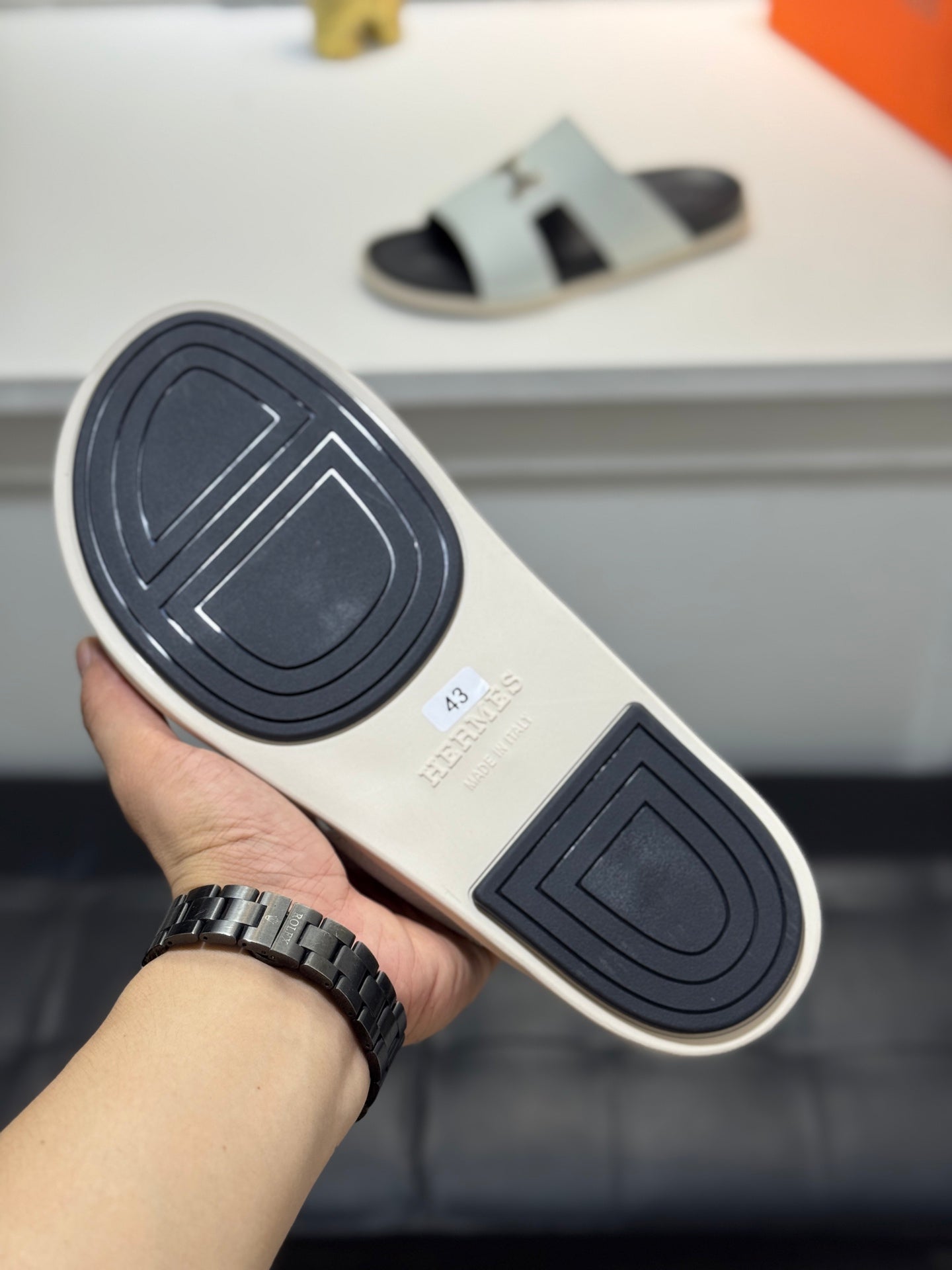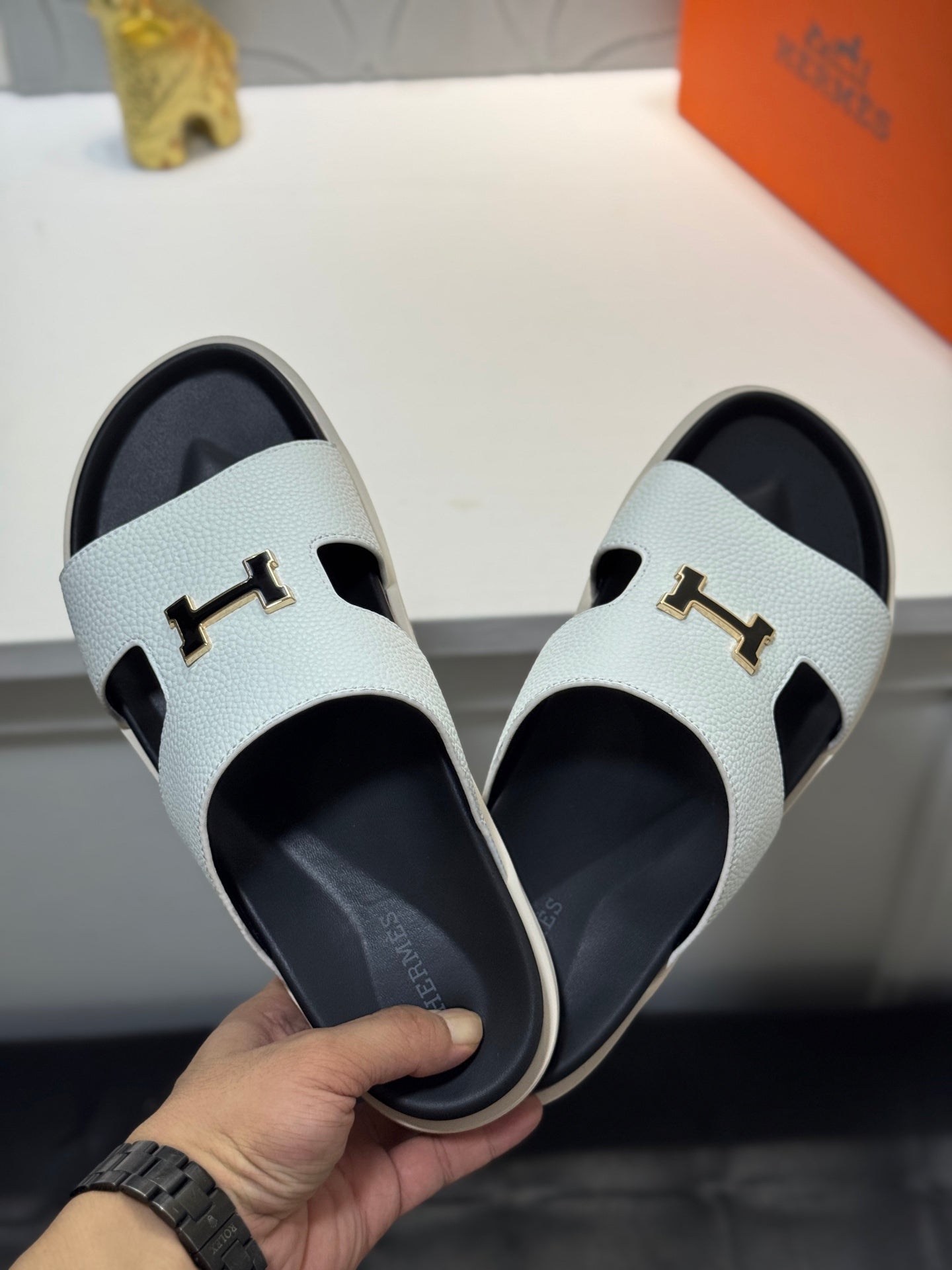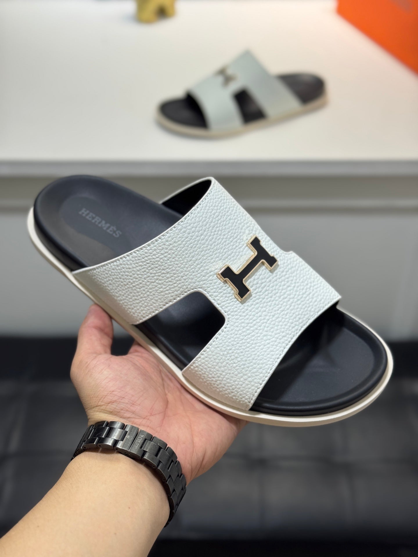 HM Oran H Black Gold Buckle Slippers in White Cowhide 735244