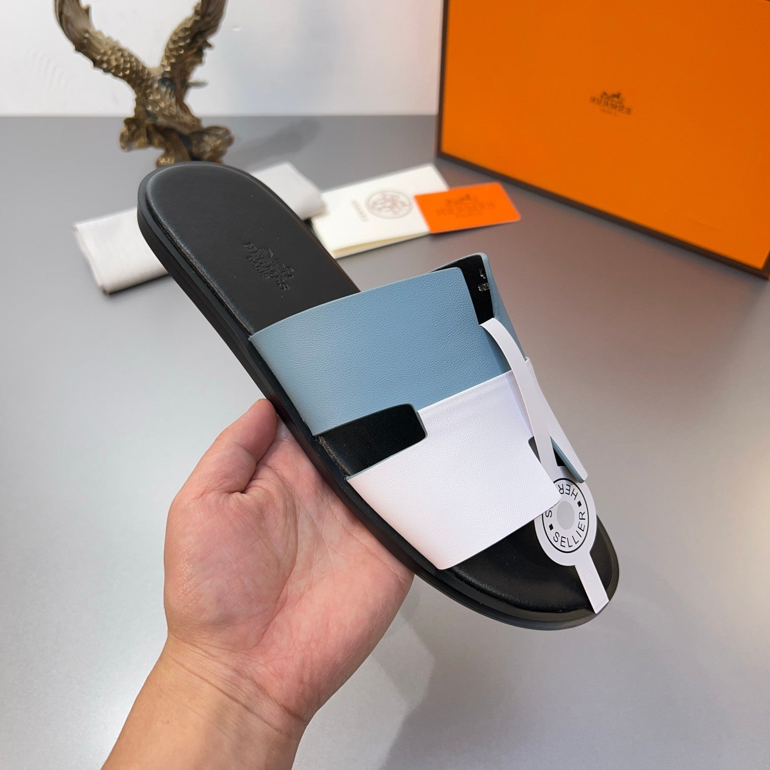 HM Oran Slippers in Cloud Blue and White Calfskin 735650