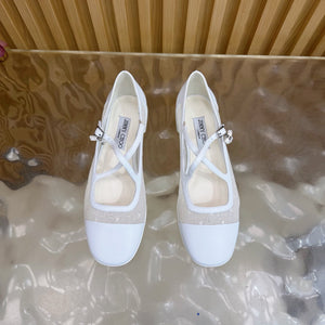 Jimmy Choo Mary Jane Flat Shoes White Mesh Leather 537766