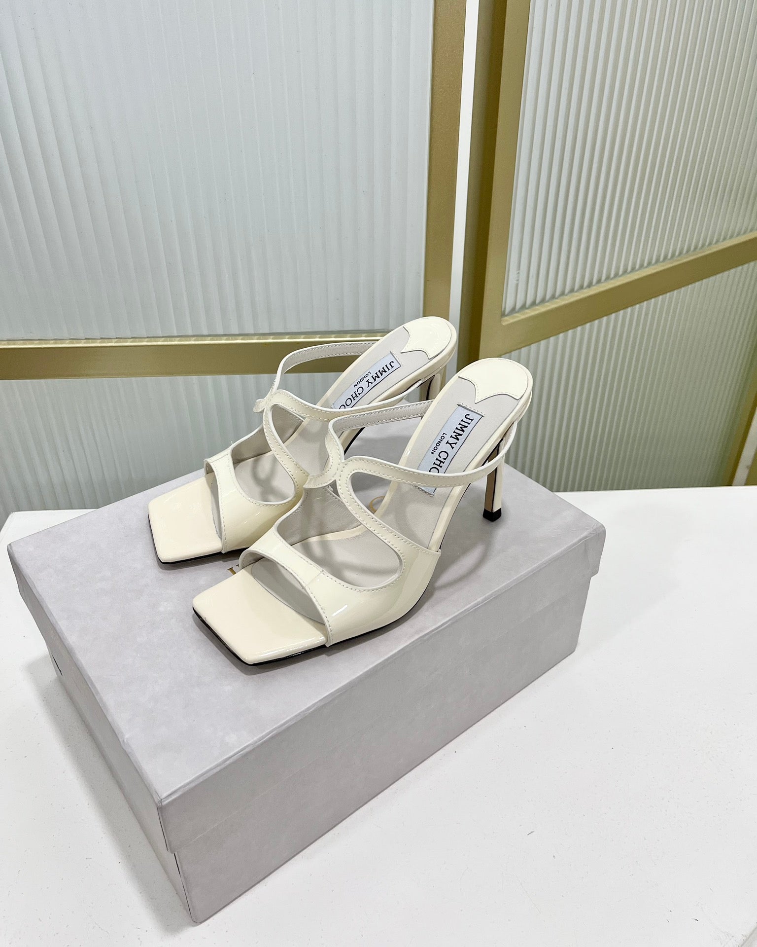 Jimmy Anise 85 In Ivory White Glossy Cowhide Mules 587692