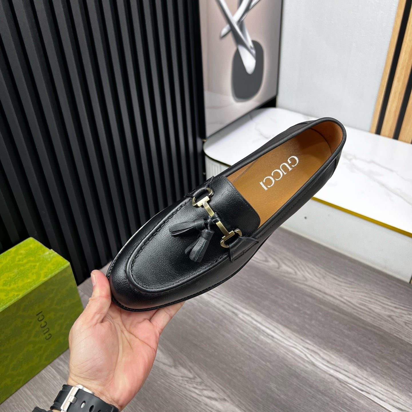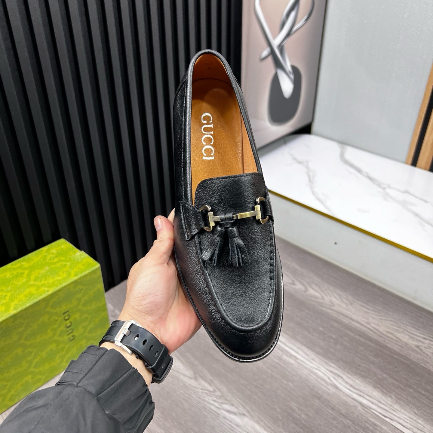 GG Men's Tassel Loafer Black Cowhide 531148