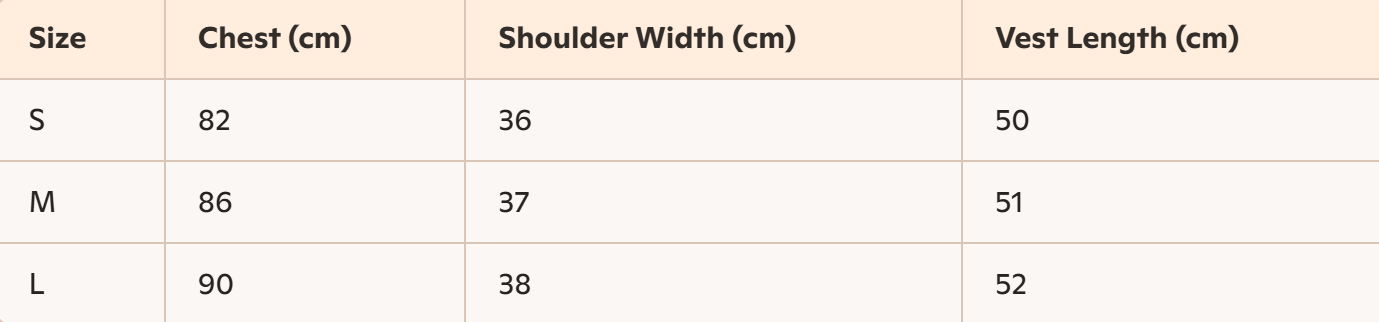 - Size: S, M, L