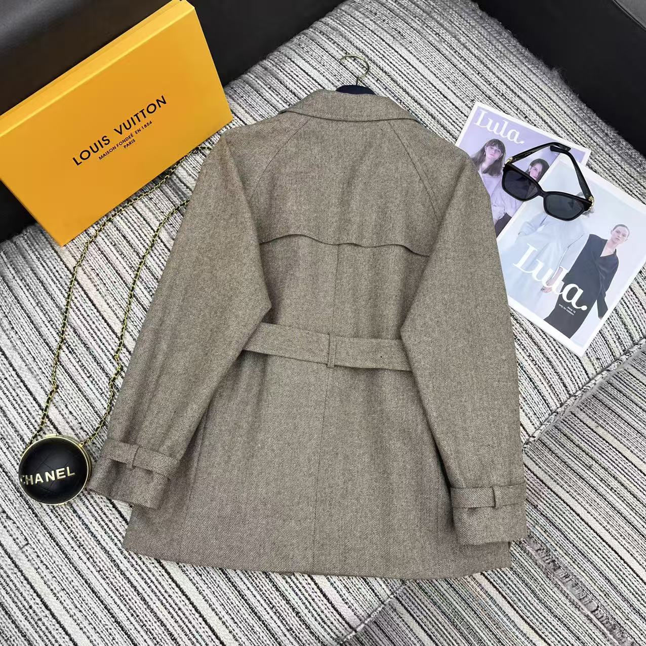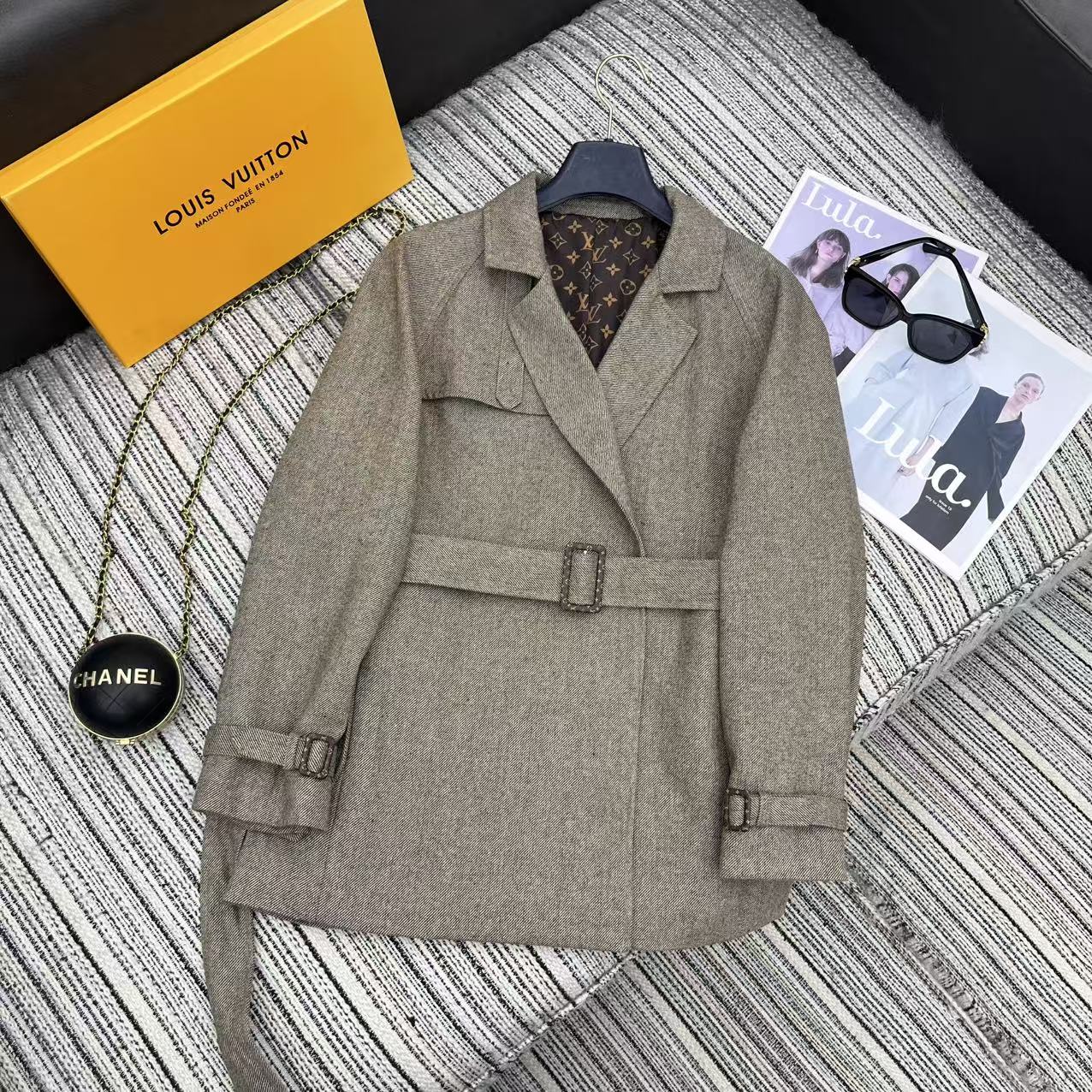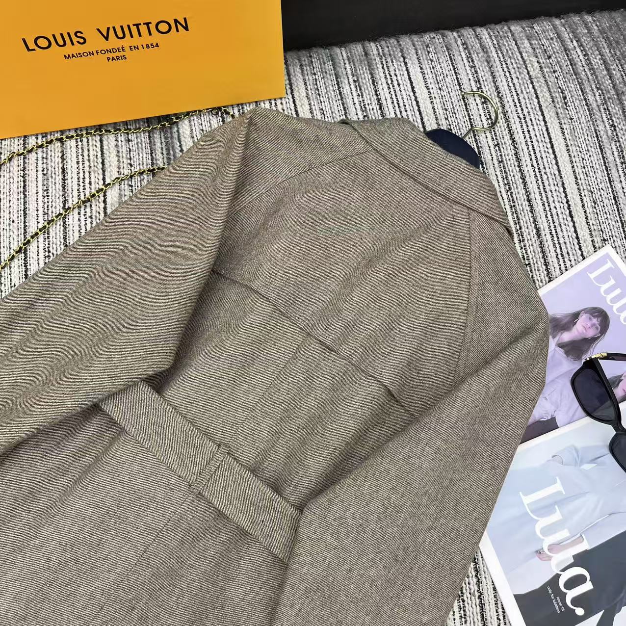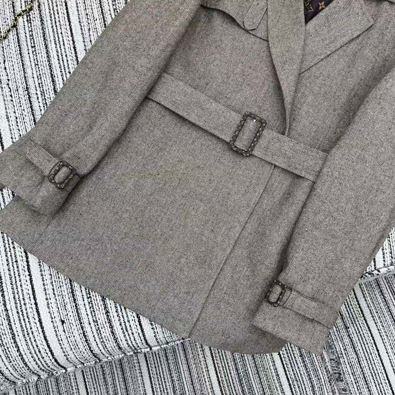 LV 25F Lapel Windbreaker Style Suit Jacket Gray Wool 311589