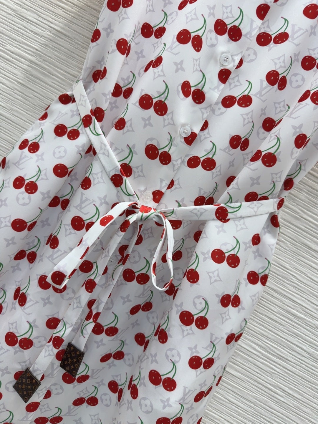 LV 25S Cherry Printed Dress White Red Poliester