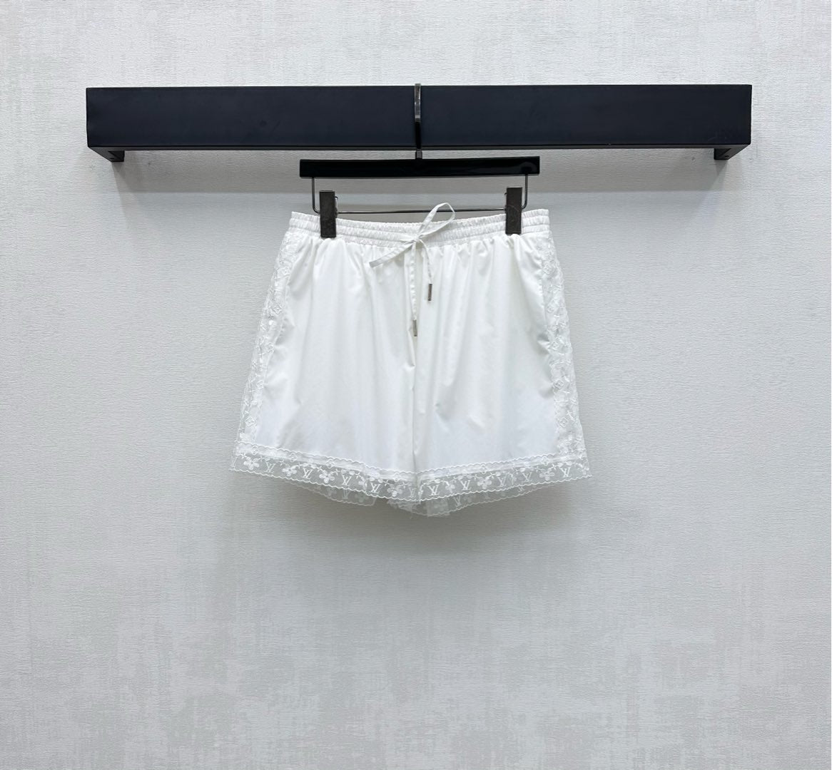 LV25 Lace-Trimmed Shirt and Shorts Set White Cotton 290149