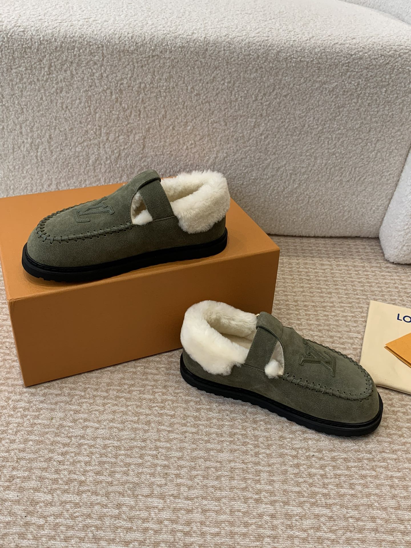 COLORADO COMFORT MARY JANE IN ARMY GREEN SUEDE AND SHEARLING LINING