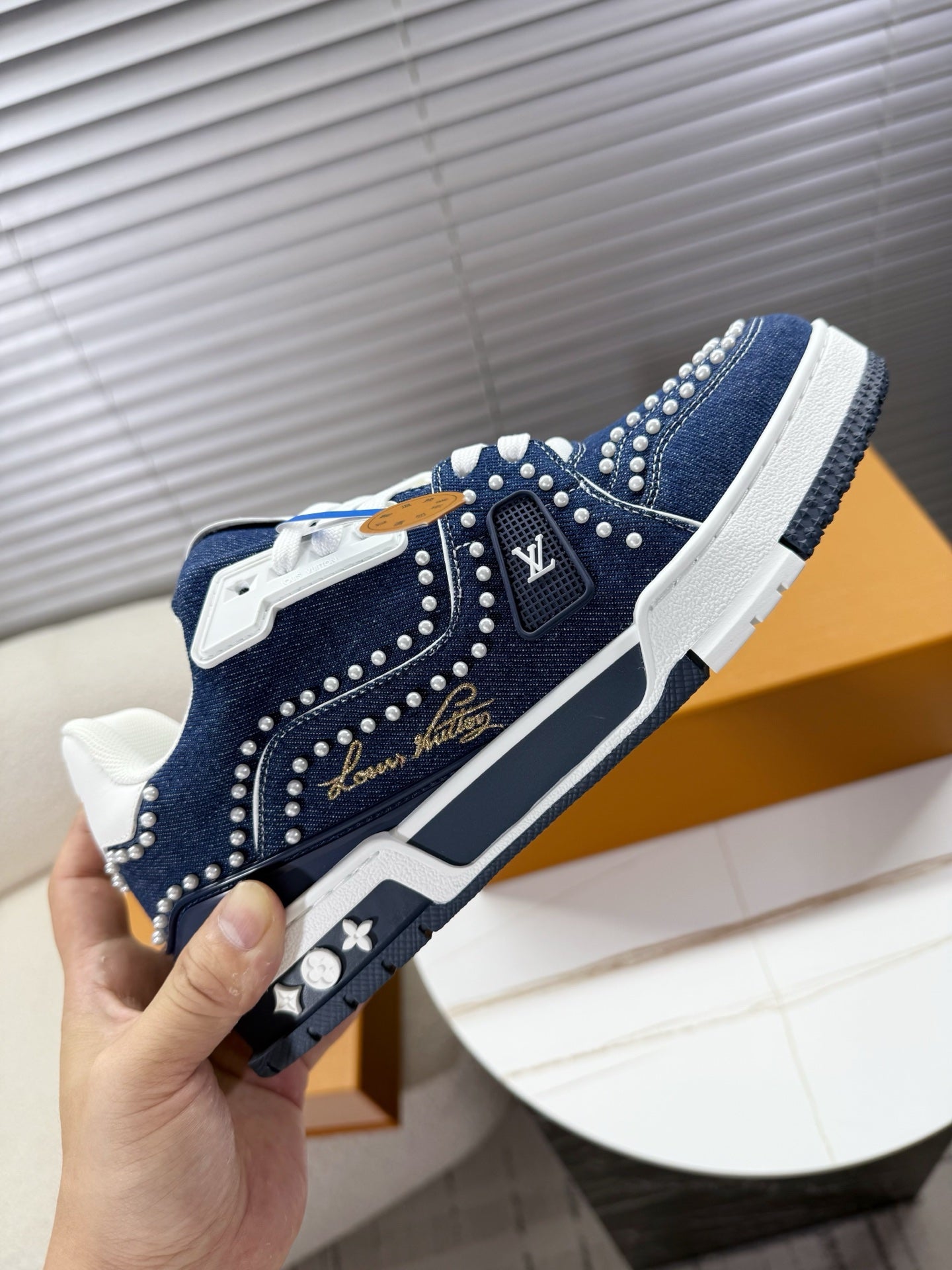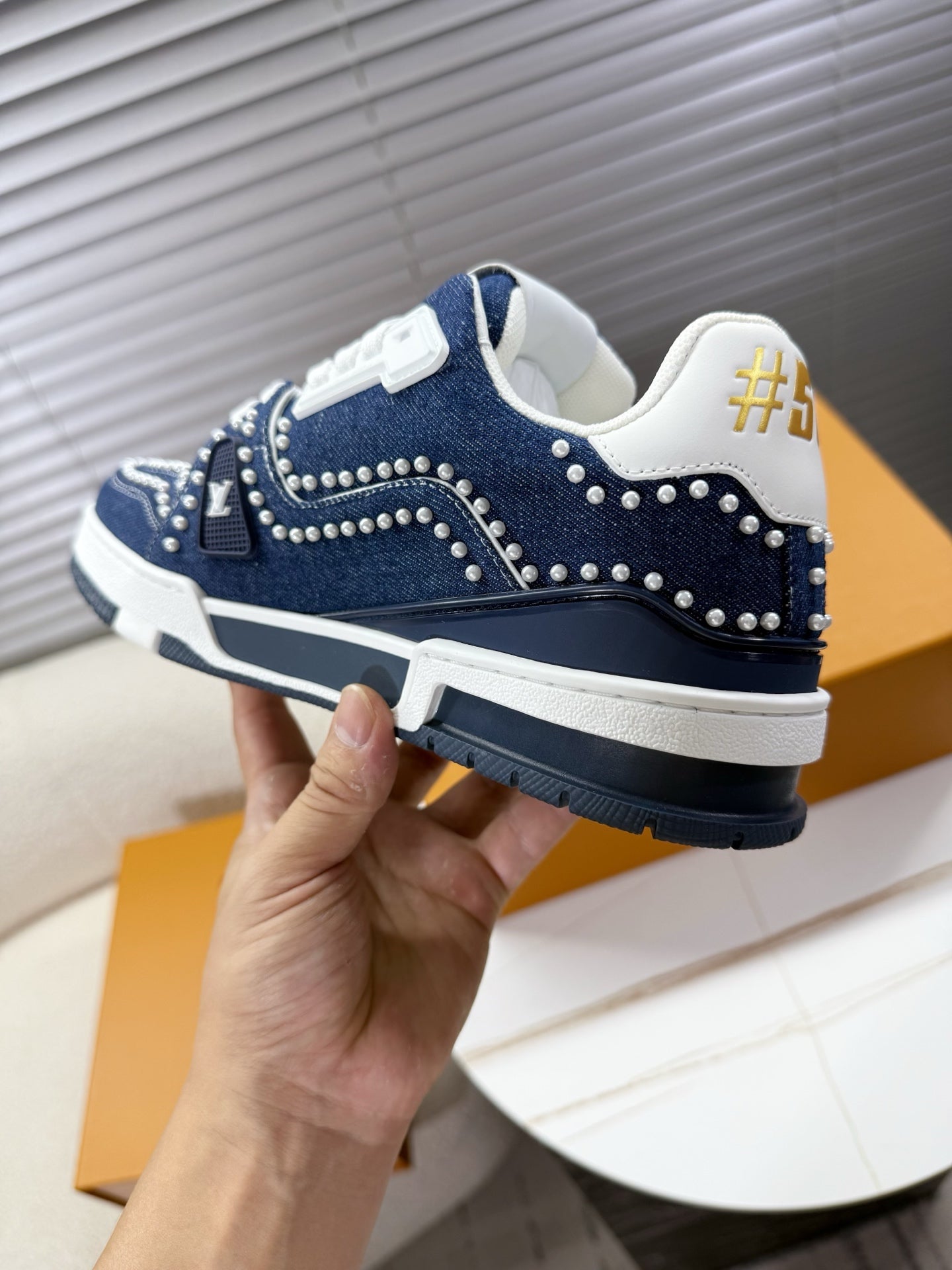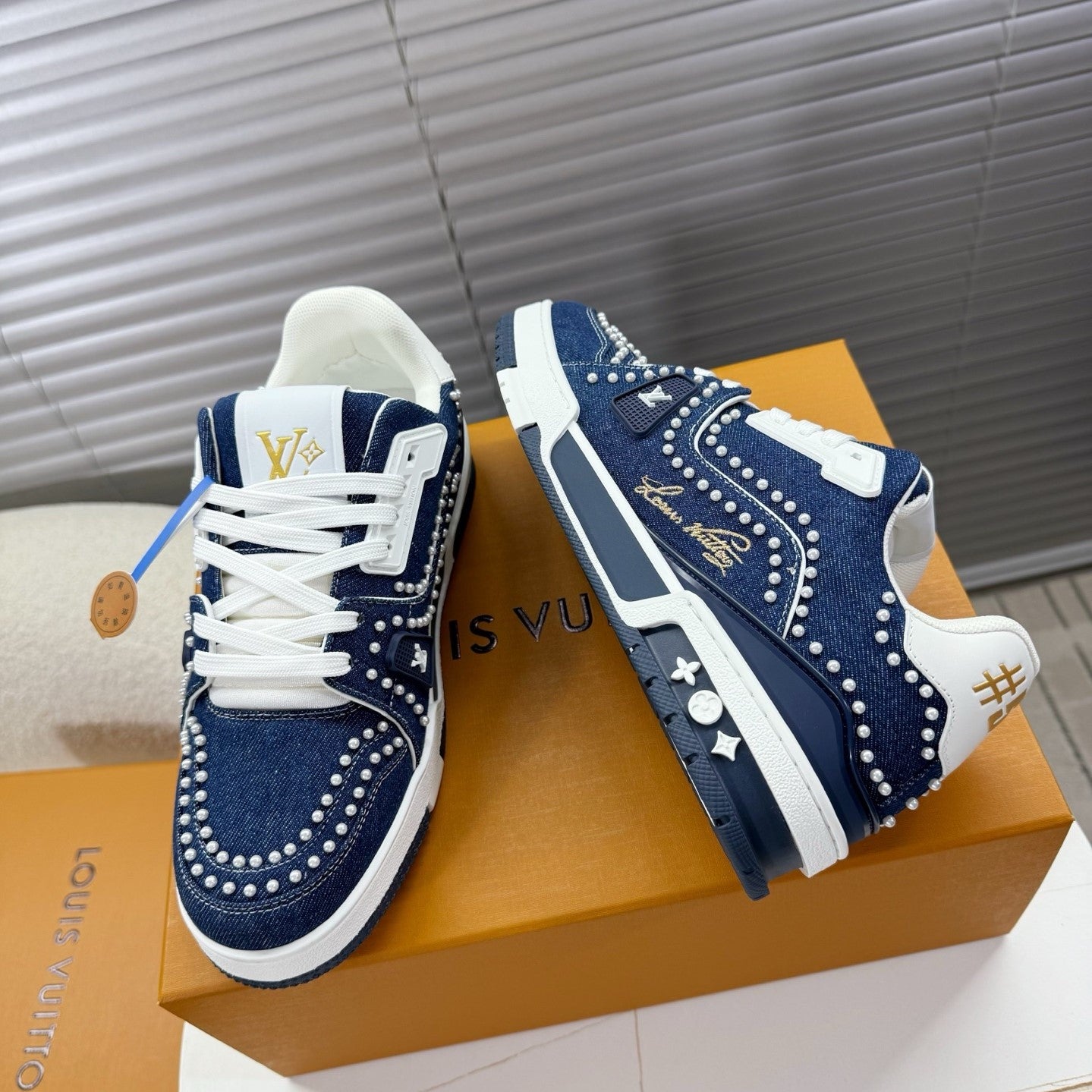 LV 1AJ512 Trainer with Swarovski™ Pearls Indigo Blue Denim 511761