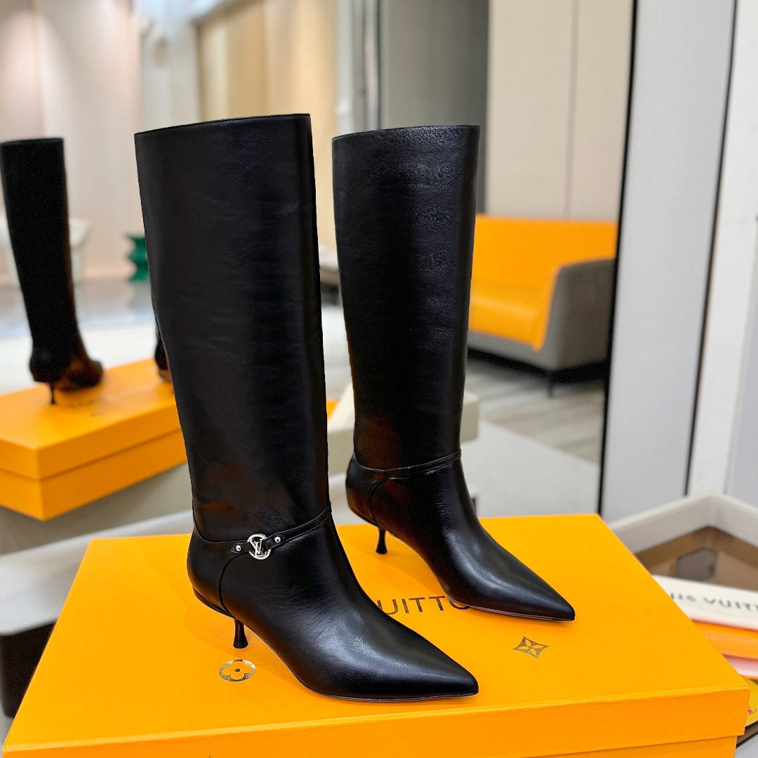 LV 6AM High Boots 55mm Heel Black Calfskin 504805