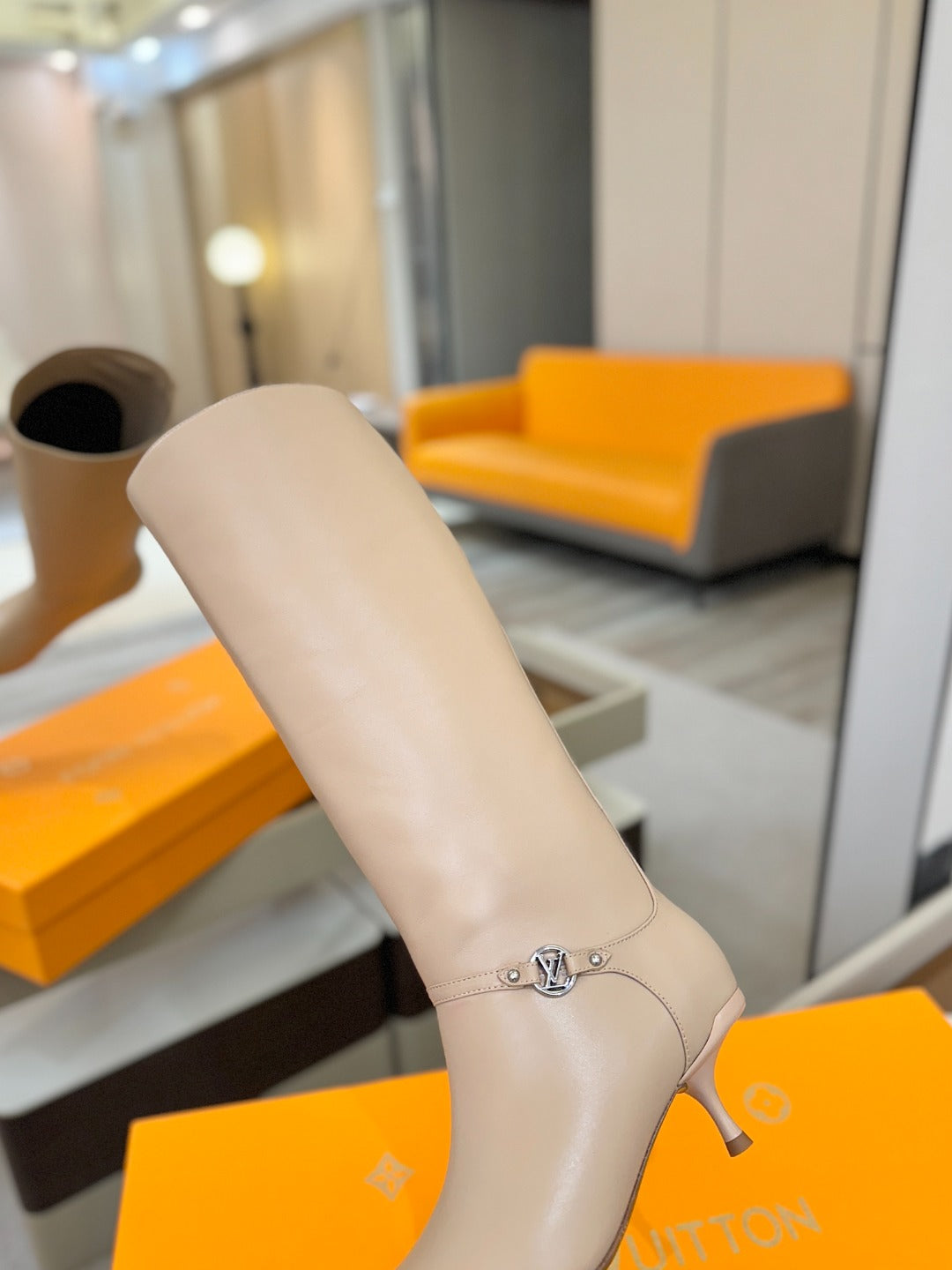 LV 6AM High Boots 55mm Heel Cream Calfskin 504806