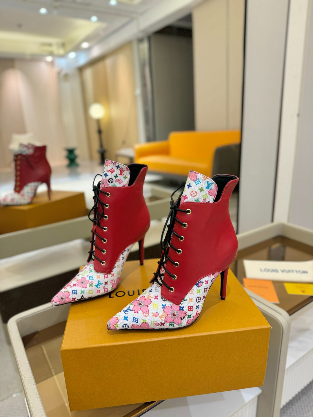LV Ankle Boot 90mm Red Calfskin Mix Cherry Blossom Monogram 504797