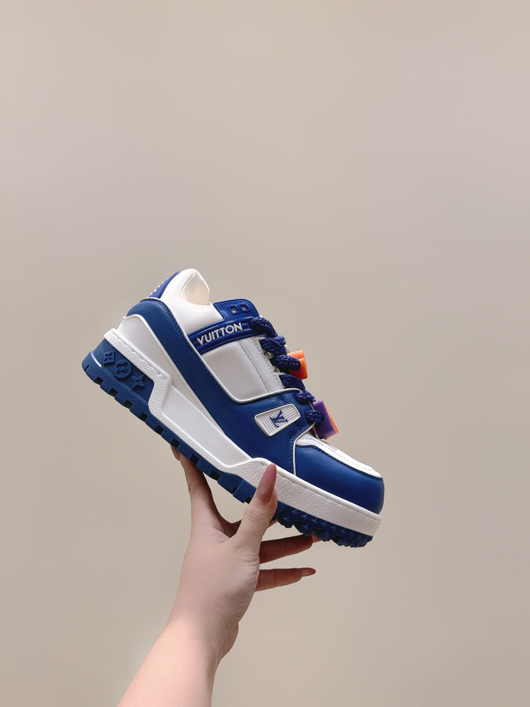 LV Trainer Maxi Sneakers Blue Mix White Calfskin Mesh 515192
