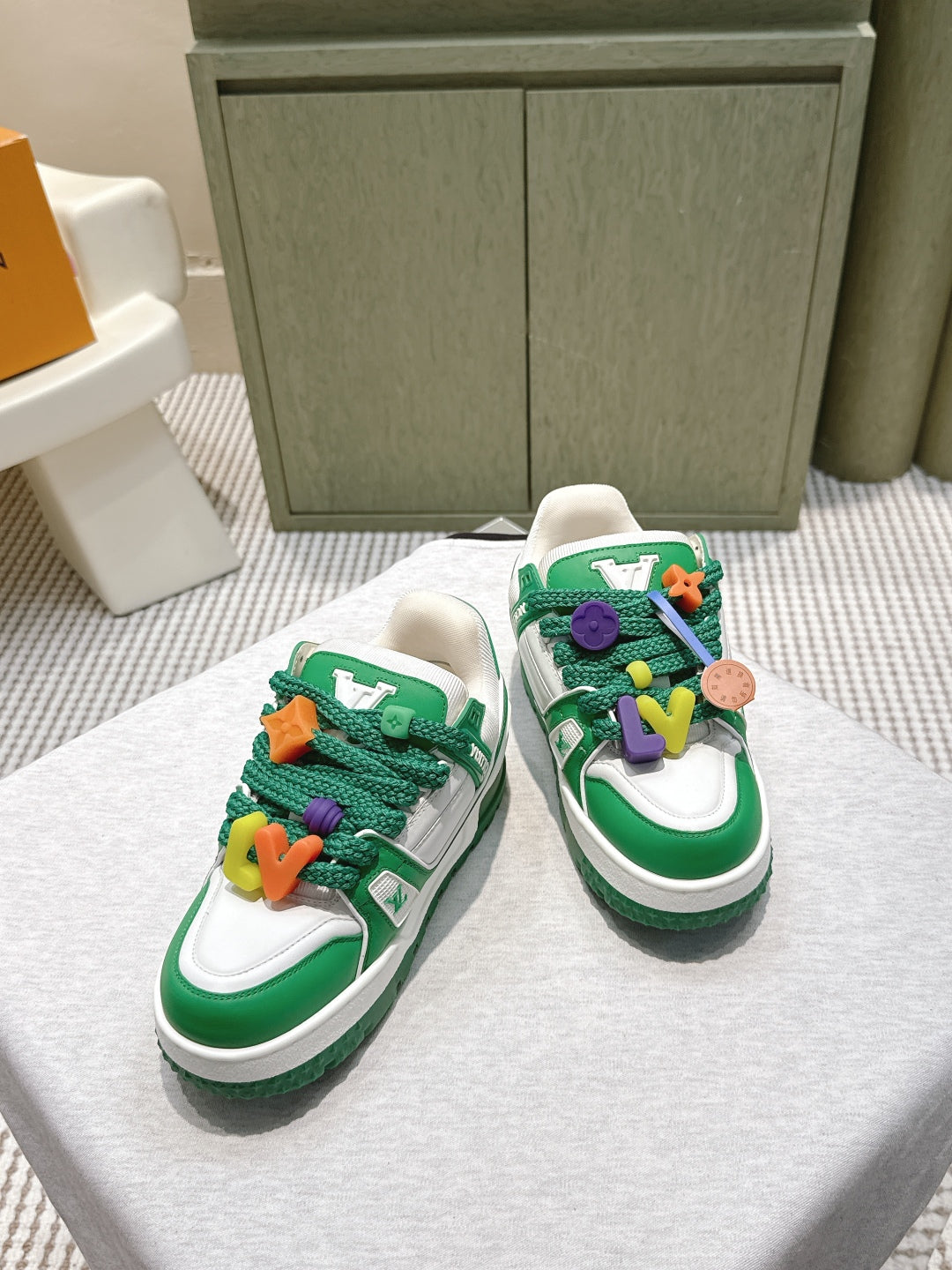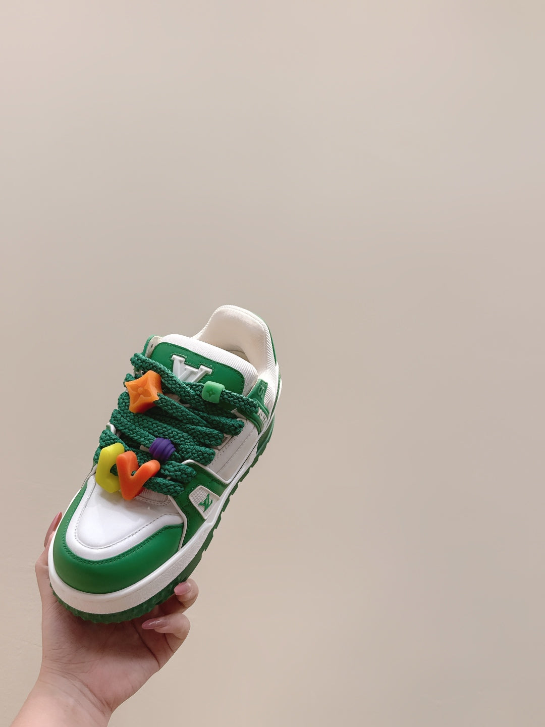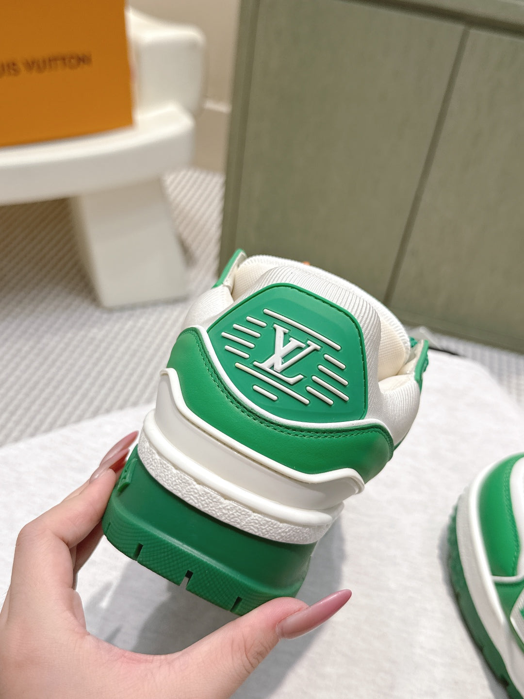 LV Trainer Maxi Sneakers Dark Green Mix White Calfskin Mesh 515194