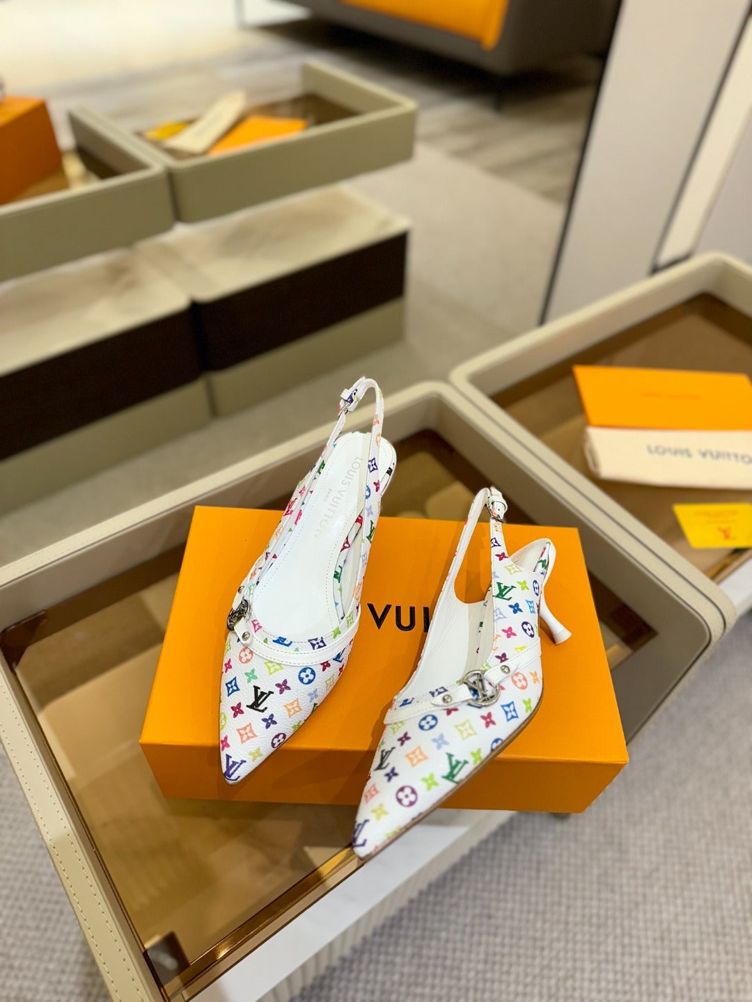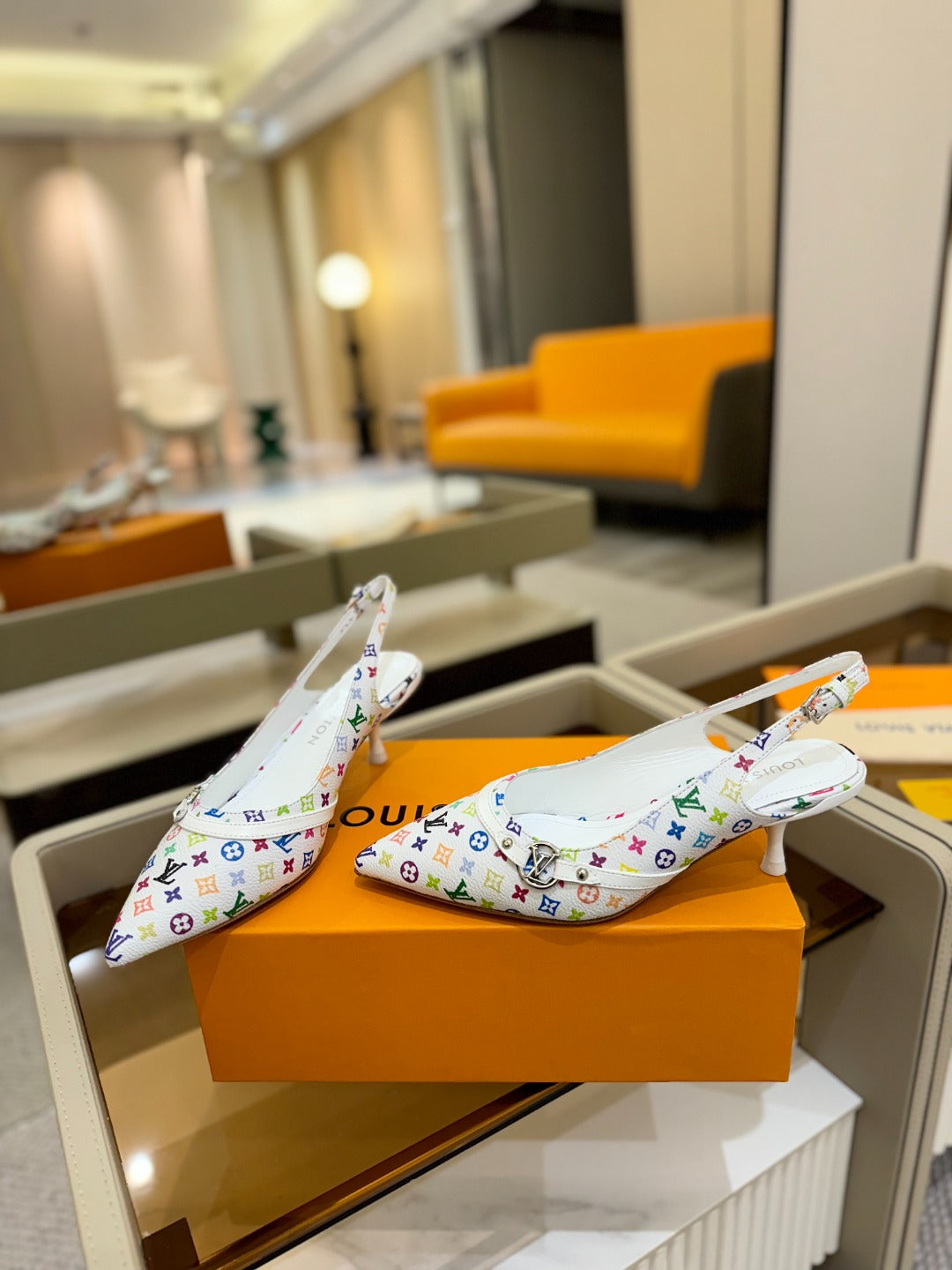 6AM Slingback Pump 4cm White Monogram Canvas and Patent Leather 241228