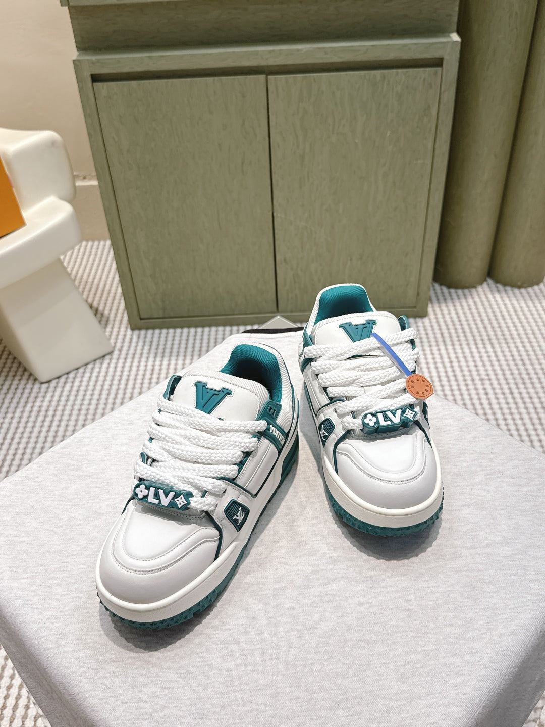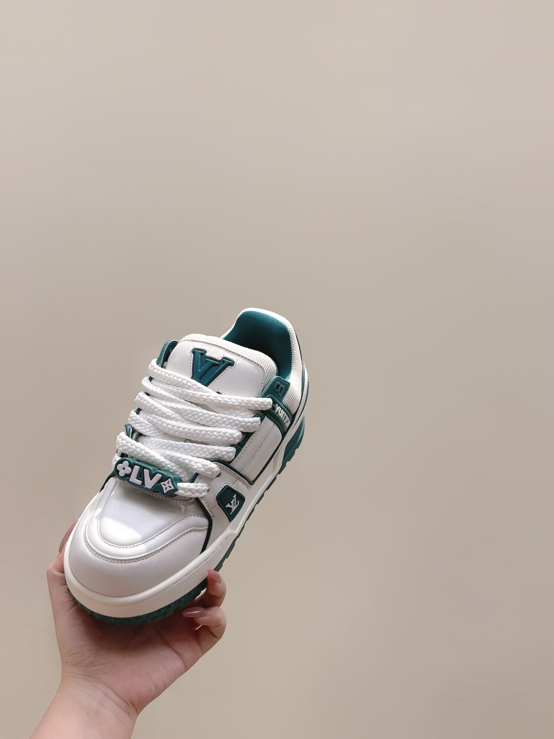 LV Trainer Maxi Sneakers White and Teal Calfskin Mesh 515199