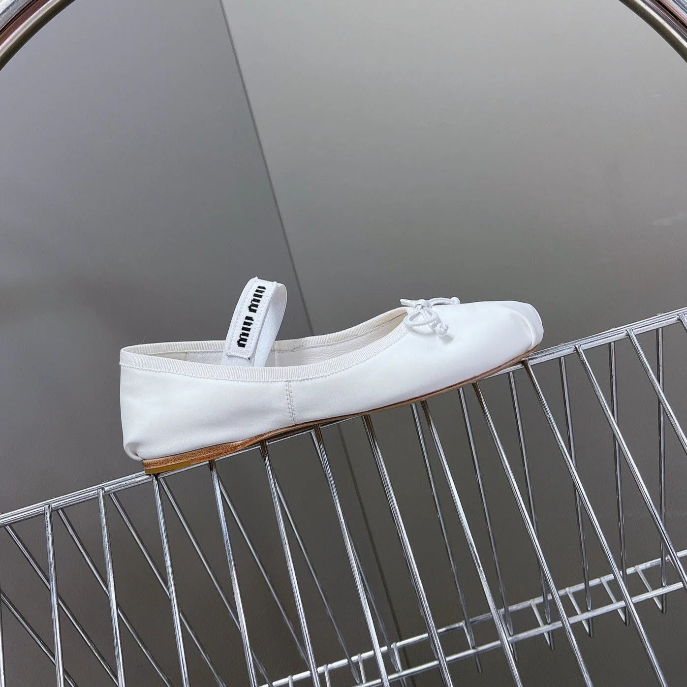BALLET FLAT SHOES WHITE GLOSSY SHEEPSKIN
