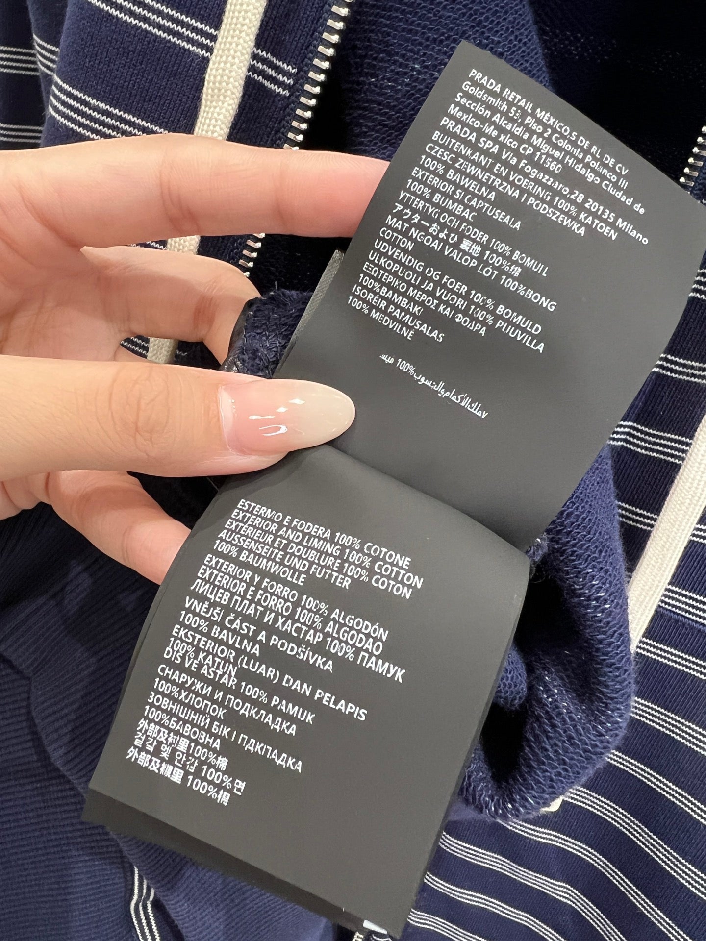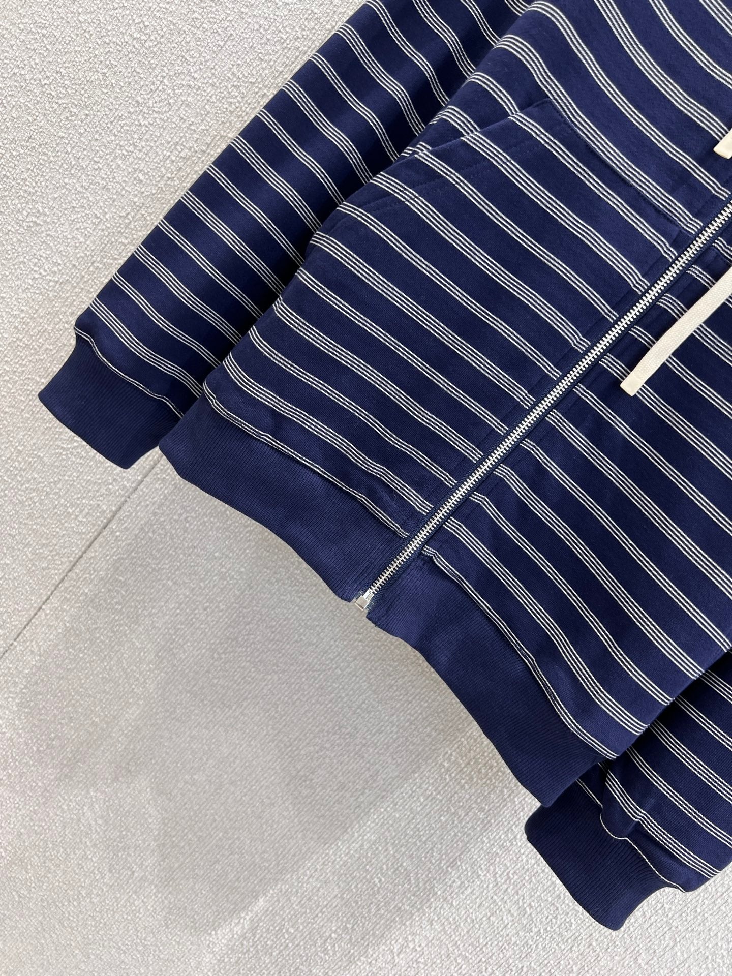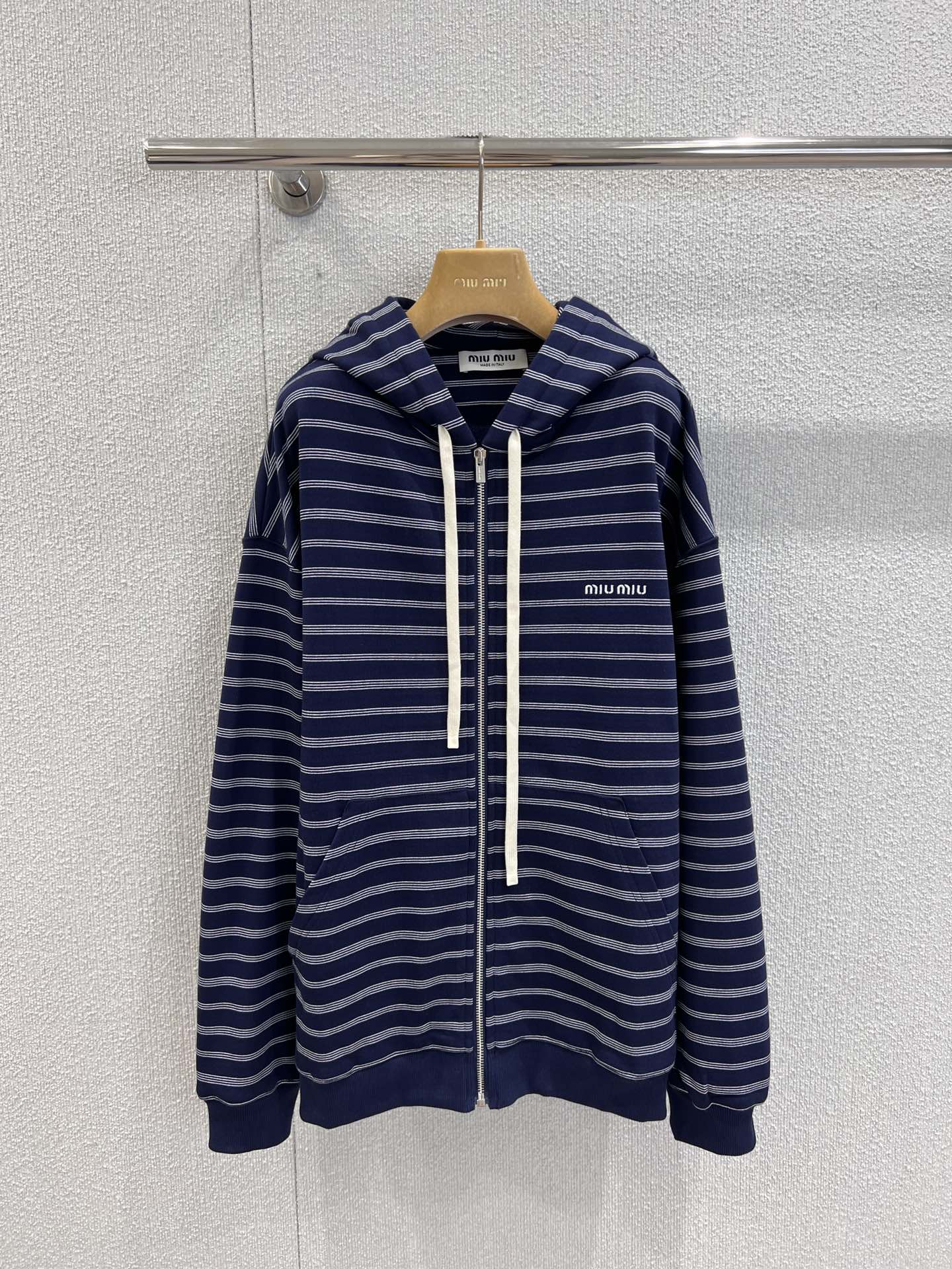Miumiu 25FW Striped Zipper Hooded Sweatshirt Jacket Blue Cotton