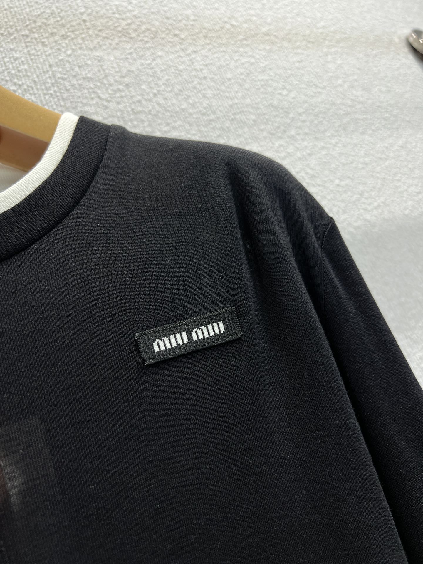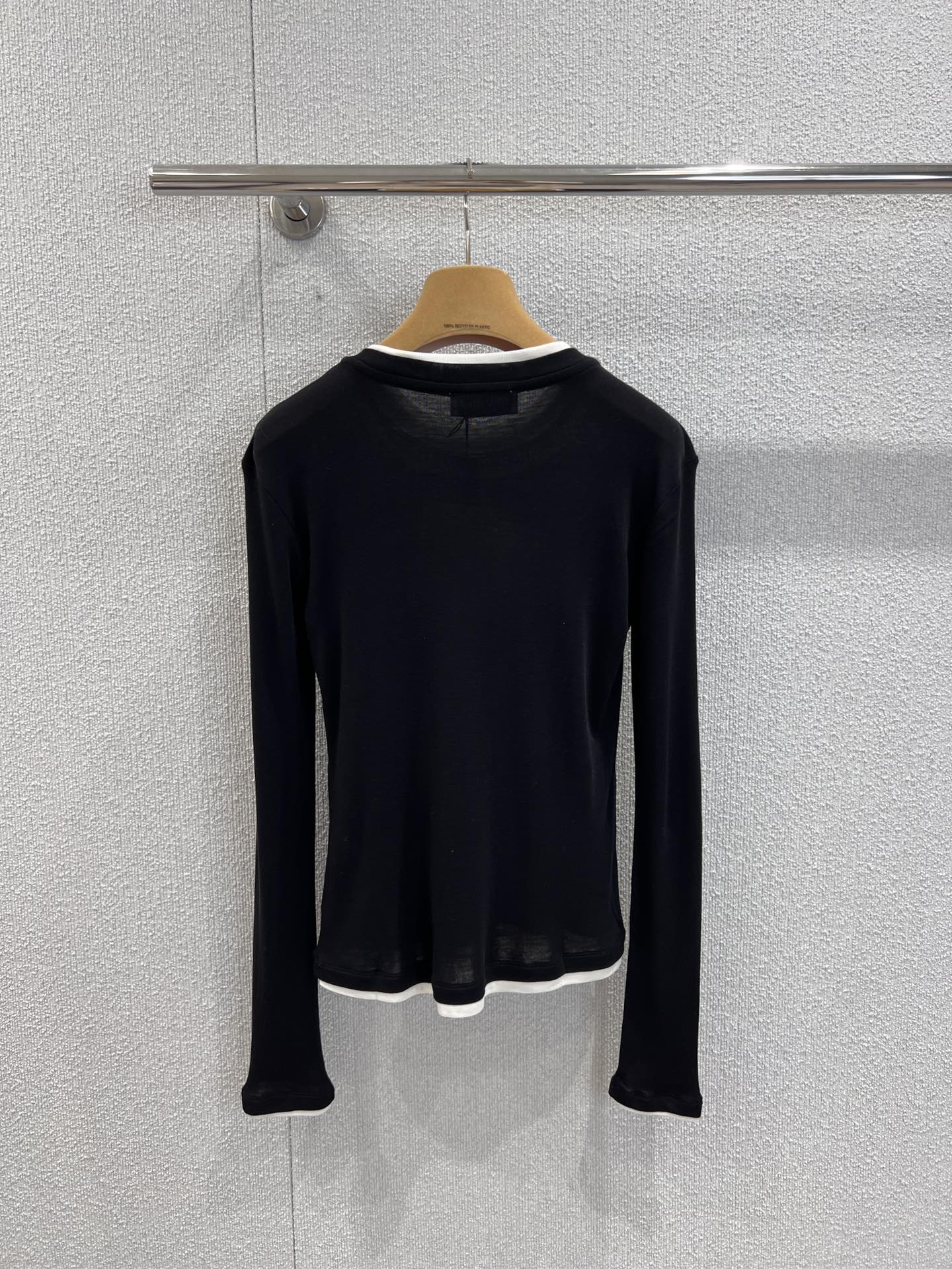 Miumiu 25FW Tencel Wool Fake Two-Piece Long-Sleeved T-Shirt Black Wool