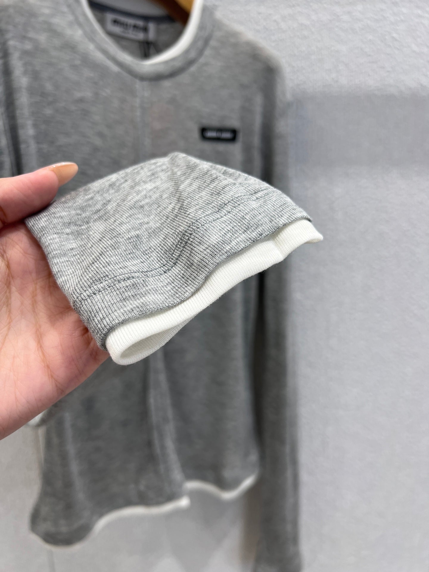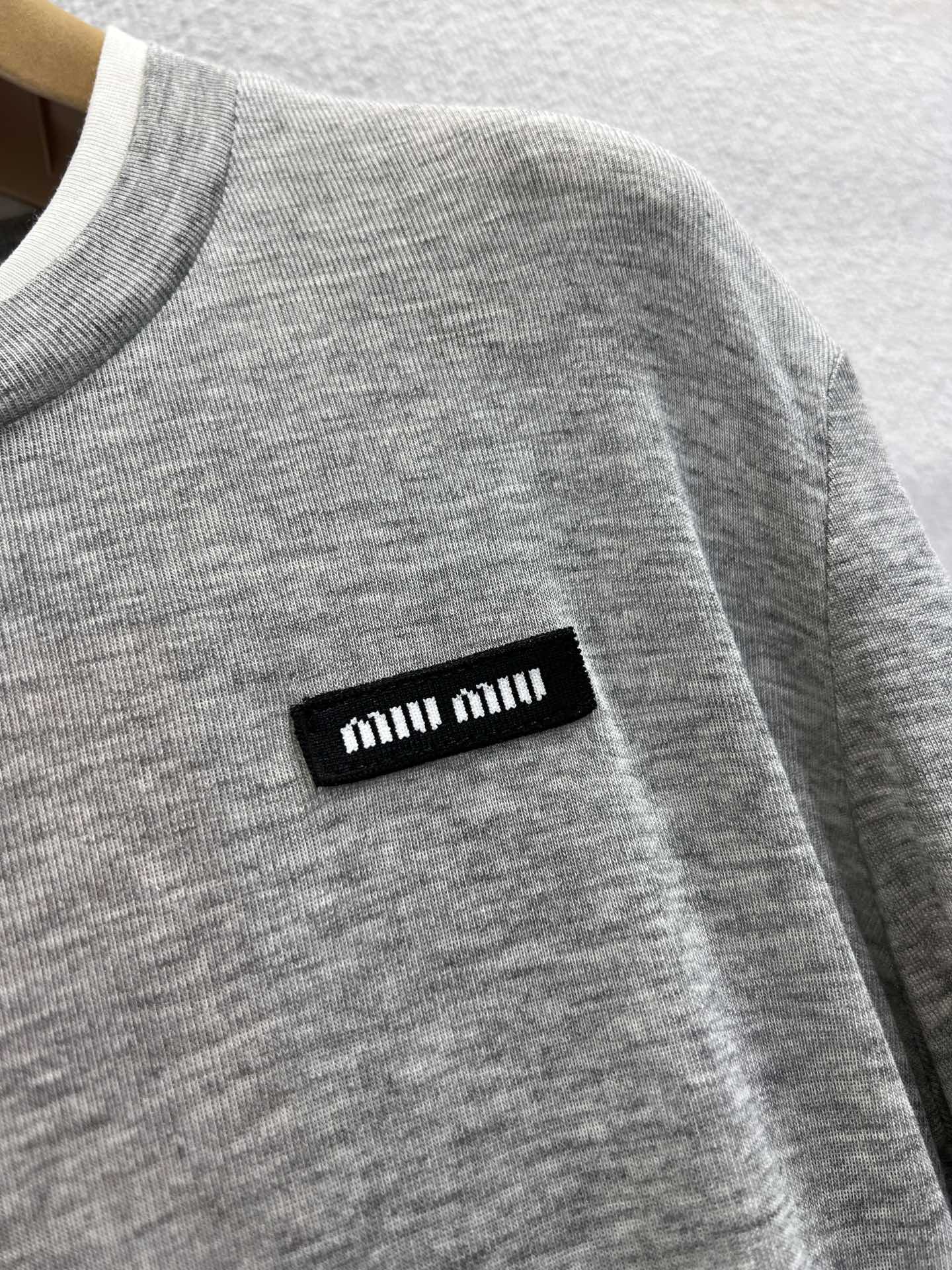 Miumiu 25FW Tencel Wool Fake Two-Piece Long-Sleeved T-Shirt Gray Wool