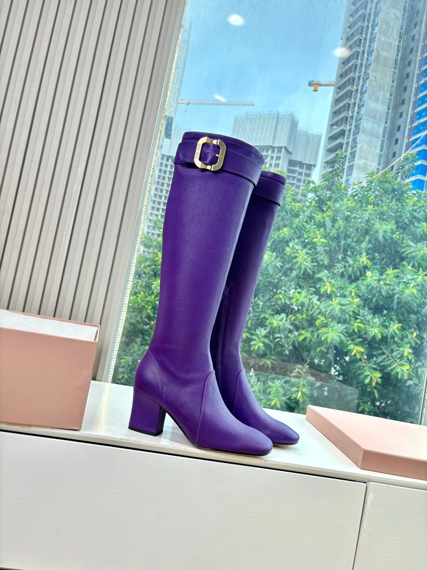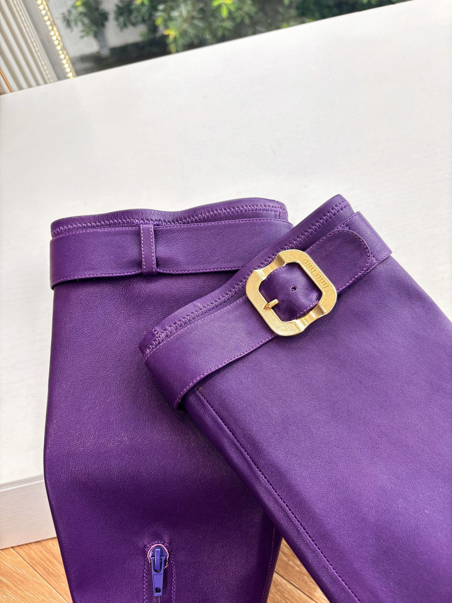 Miu Boots With Buckle Purple Nappa Leather 506635