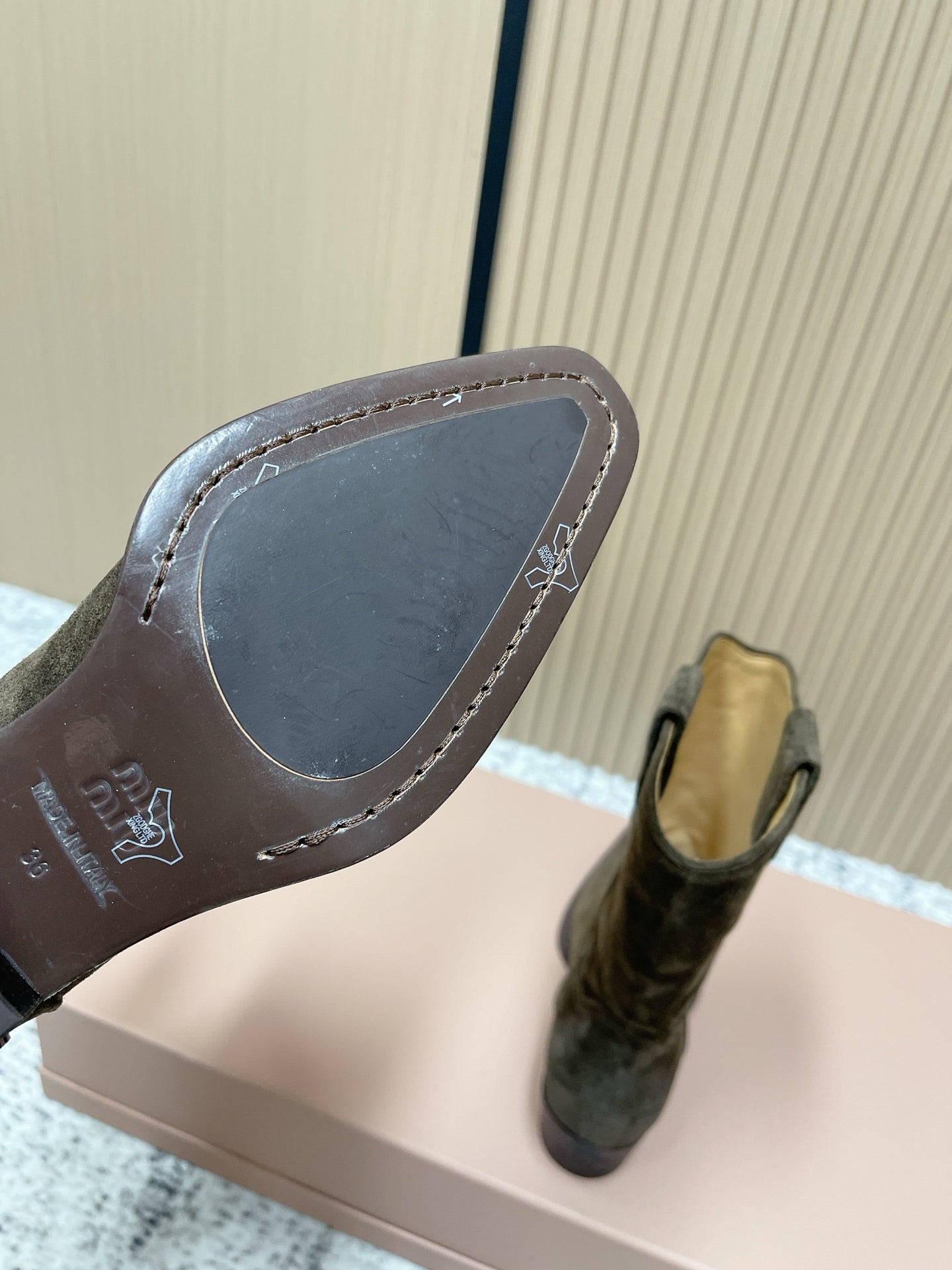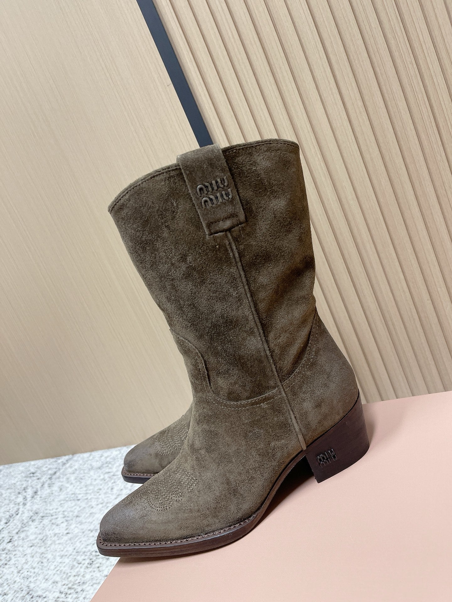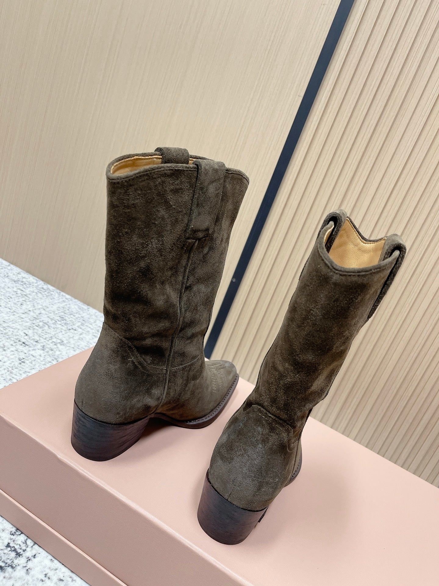 Miumiu Latest FW Western Cowboy Boots olive green Suede 533967