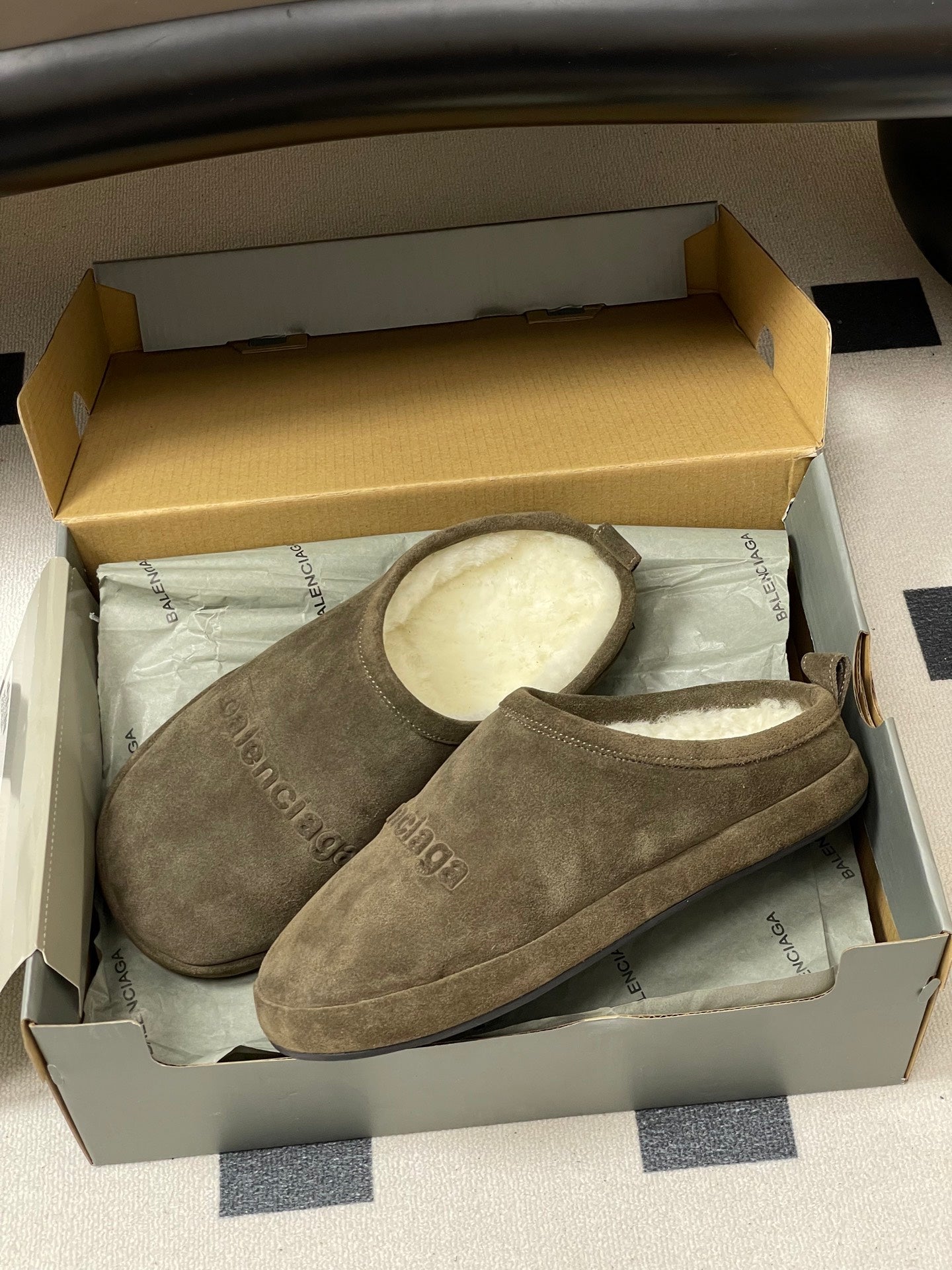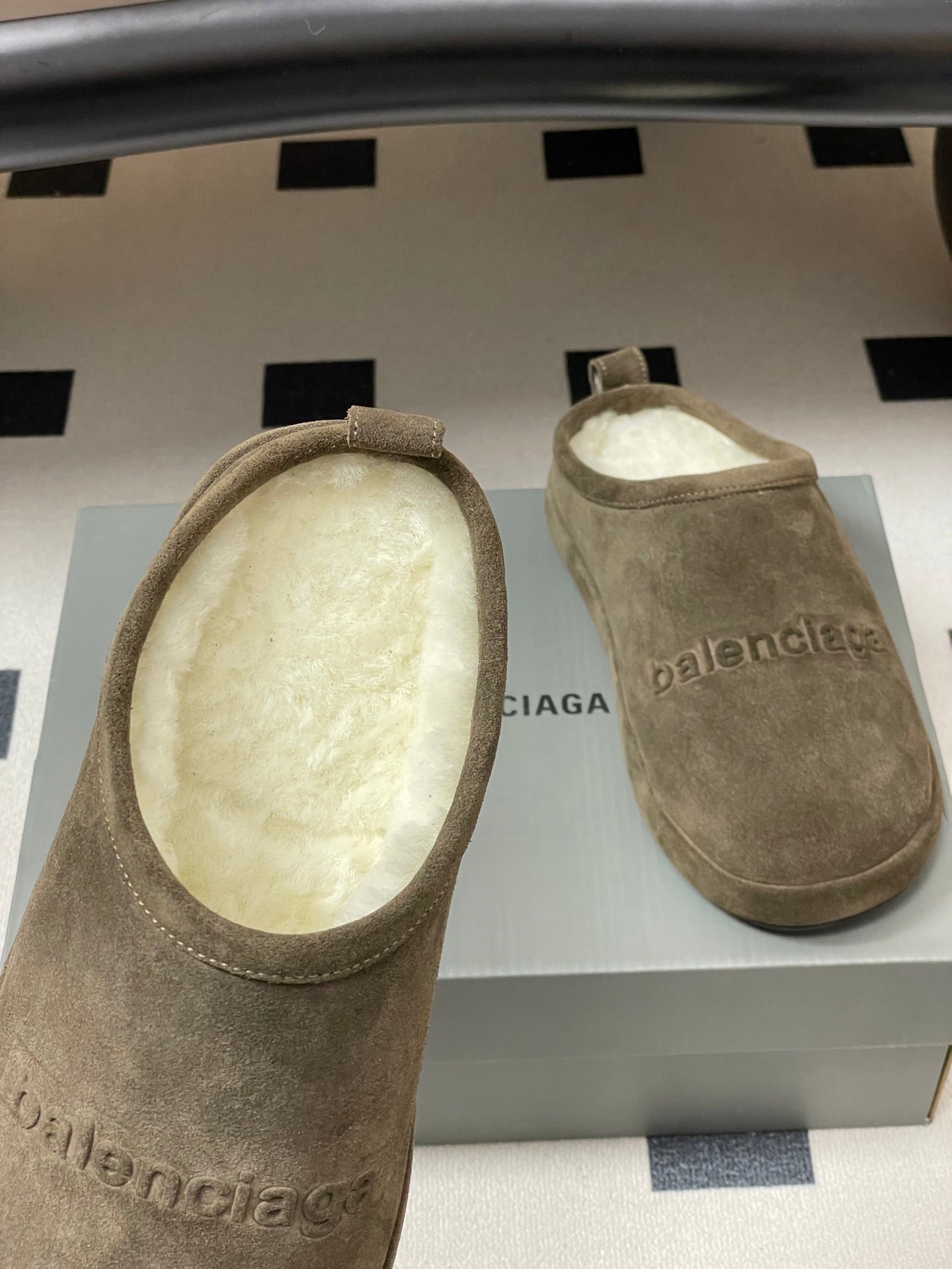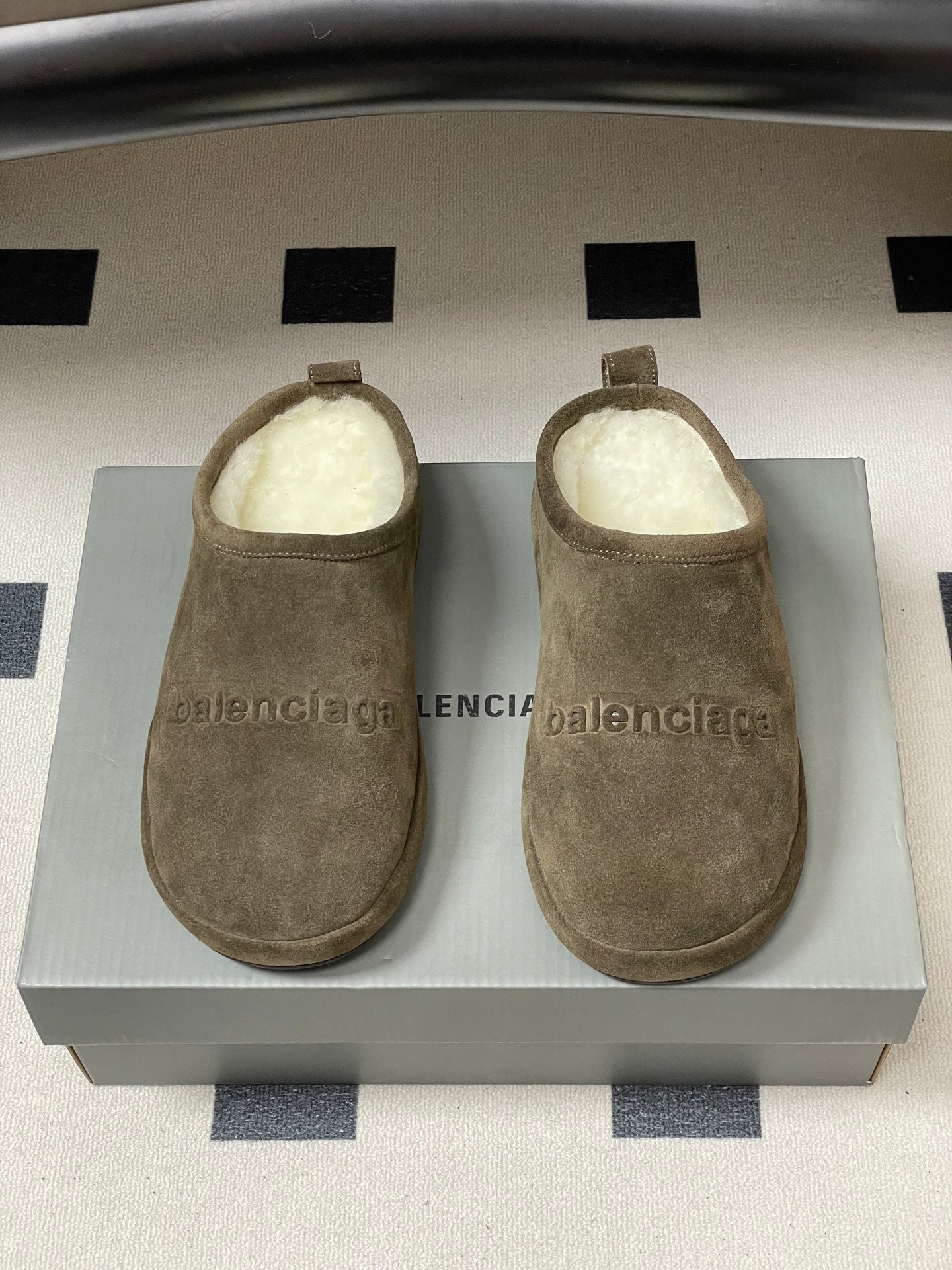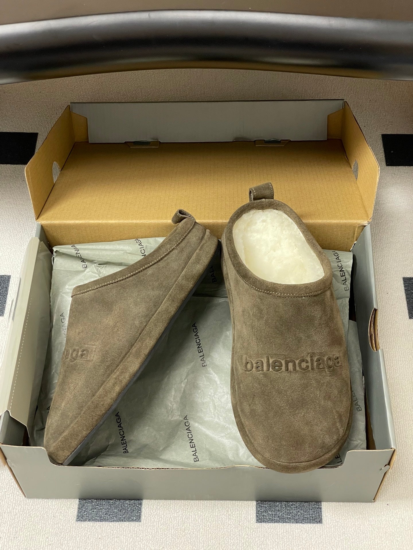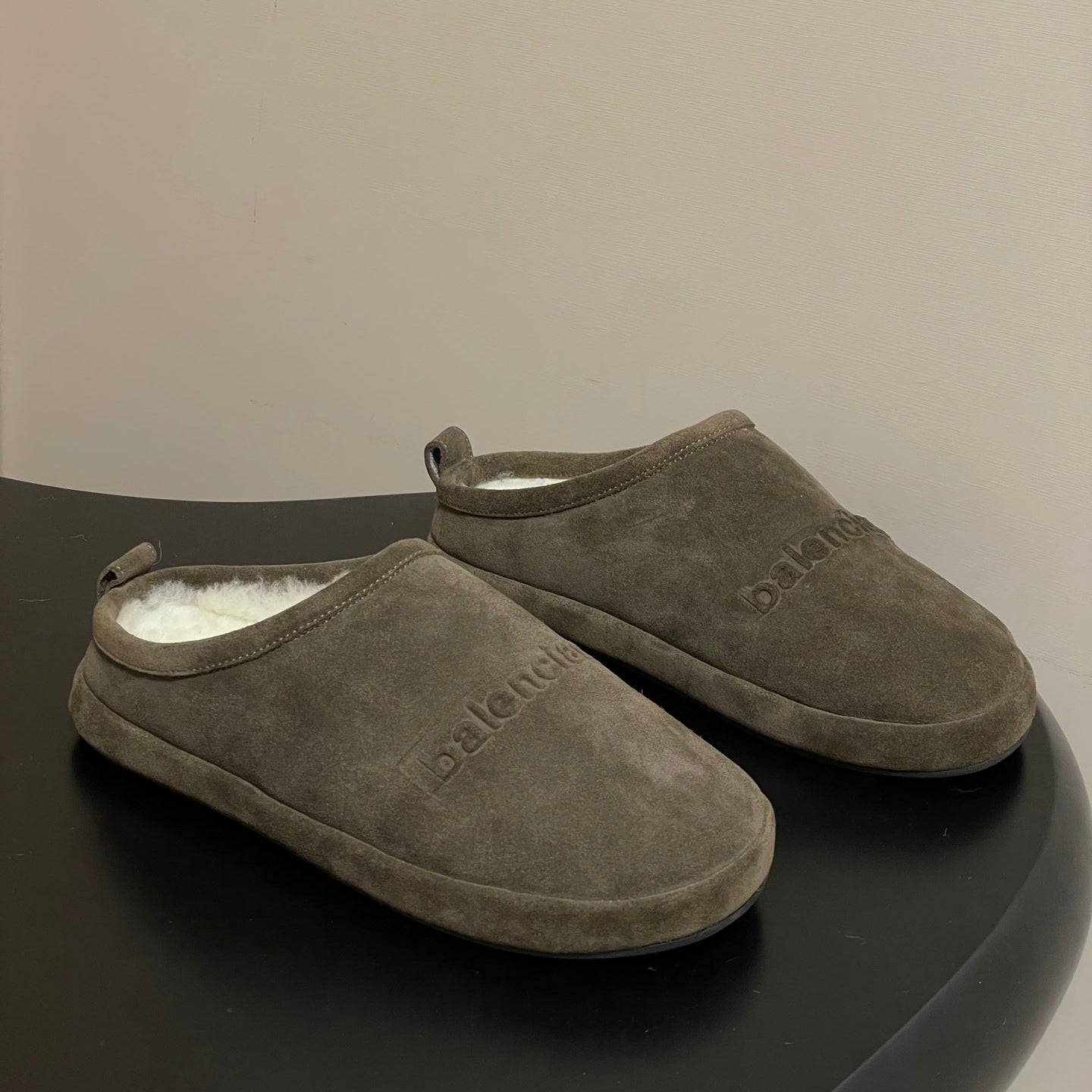 Balenciaga Mule Slip-On Taupe Suede Wool 534532
