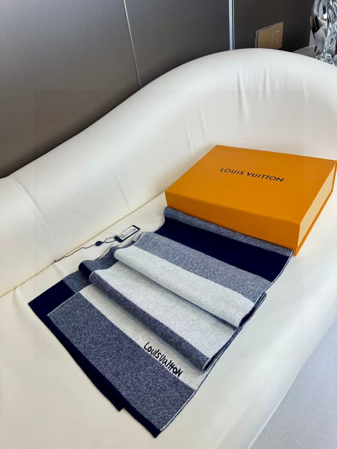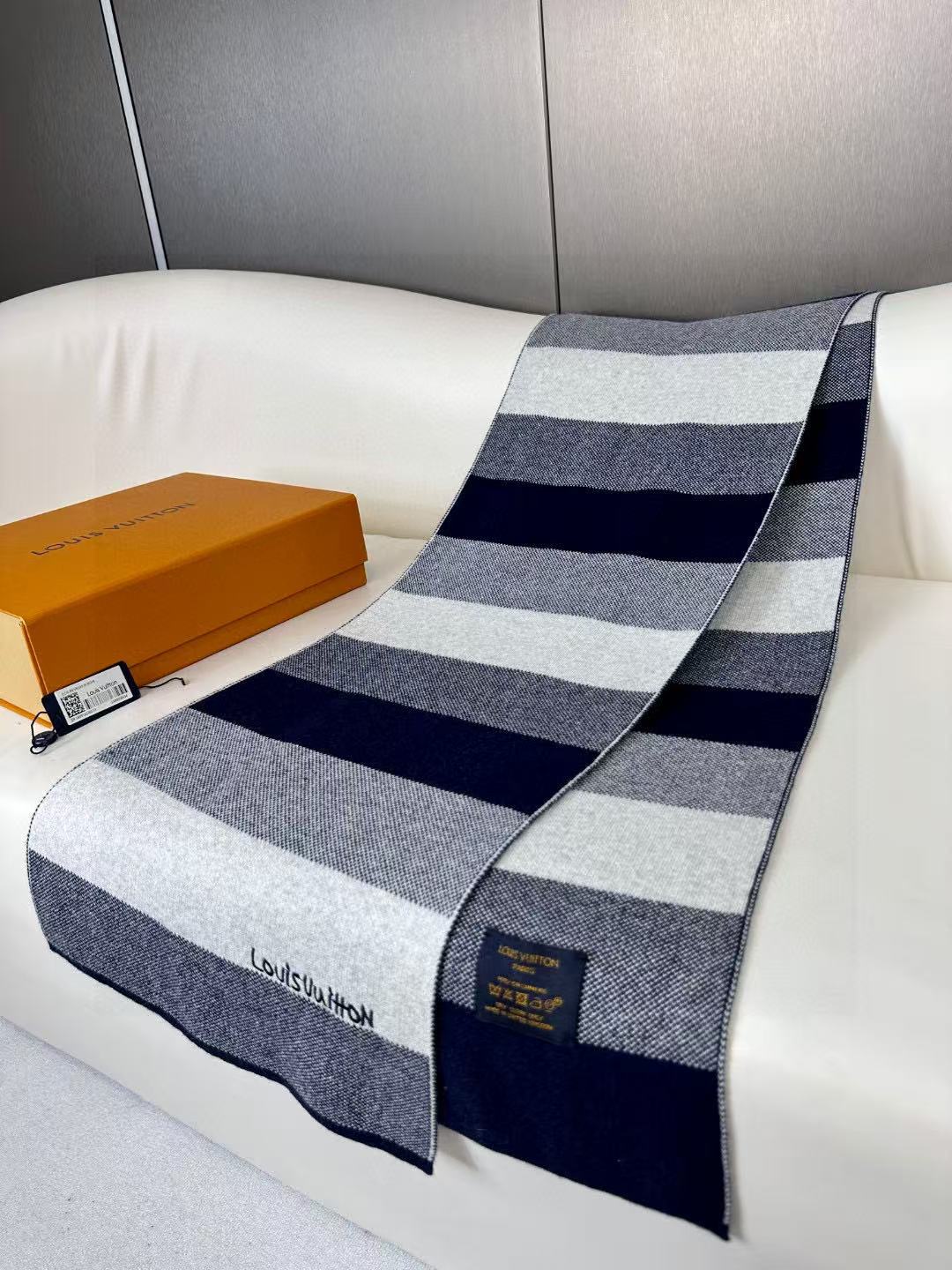LV 180cm Knitted Cashmere Classic Striped Weave Scarf 839489