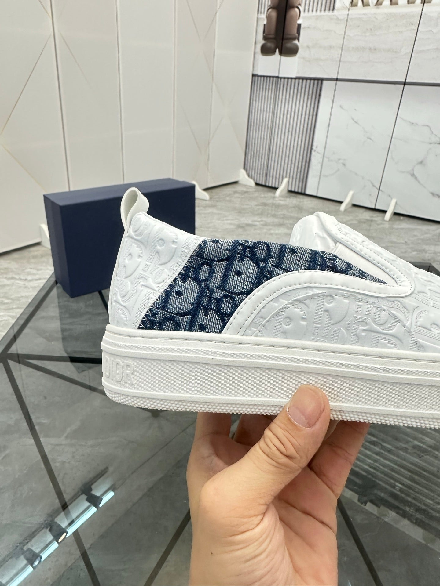 CD Slip on loafer White Blue Cowhide Fabric 647995
