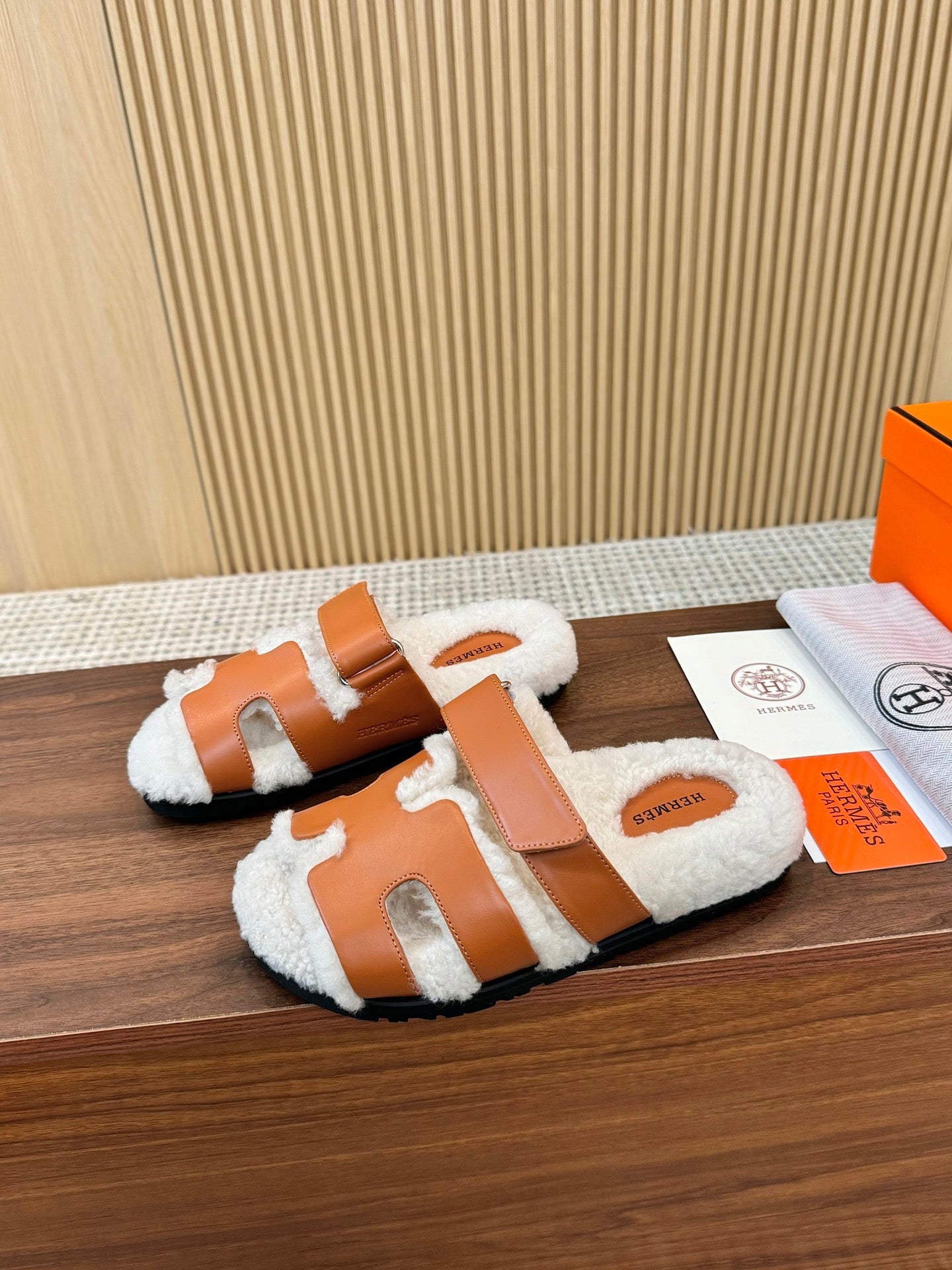 HM Chypre Sandal Burnt Orange Mix White Wool And Cowhide Lining 543687