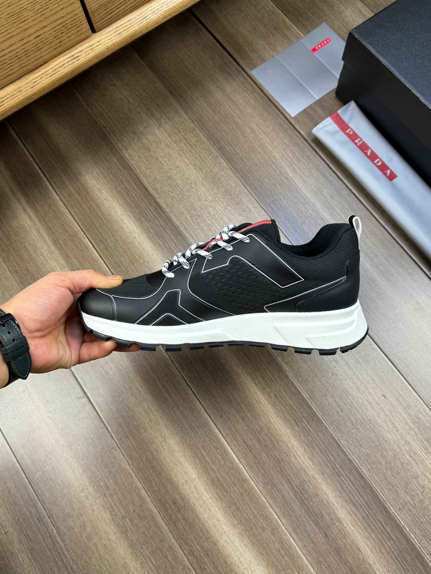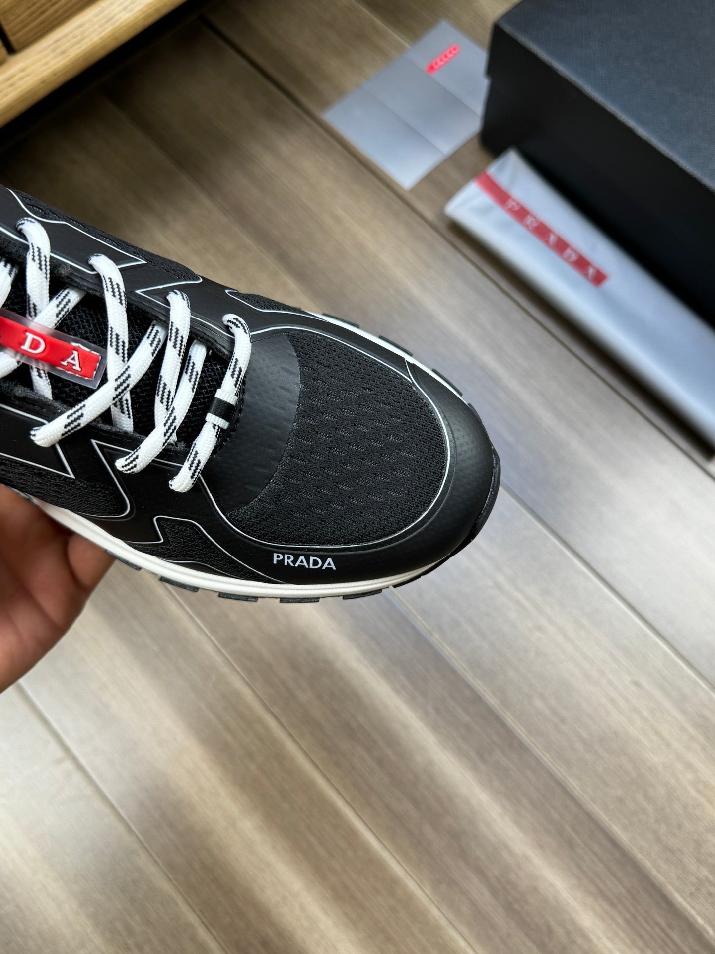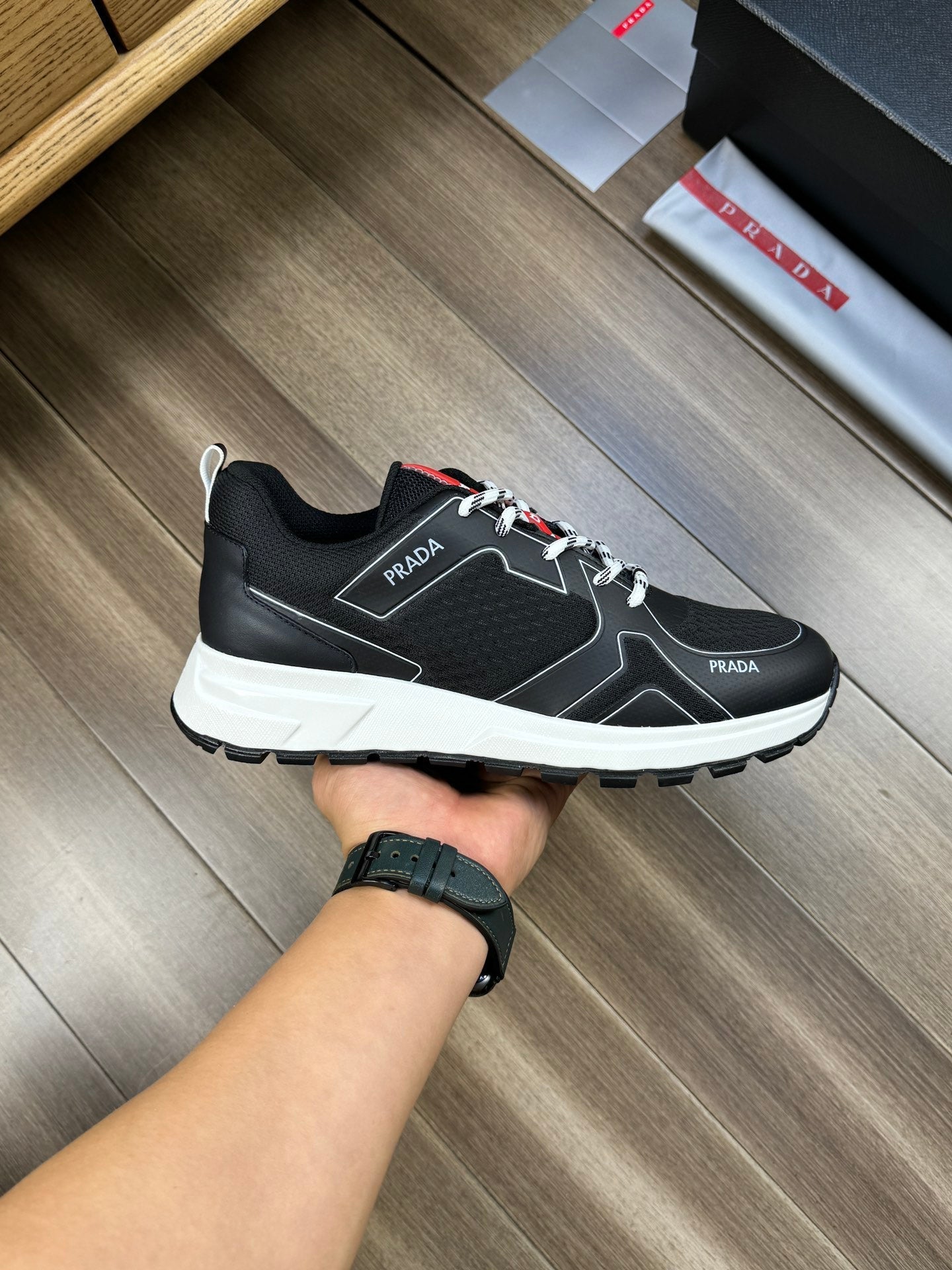 PRA SNEAKER BLACK NAPPA CALFSKIN AND FLYKNIT FABRIC