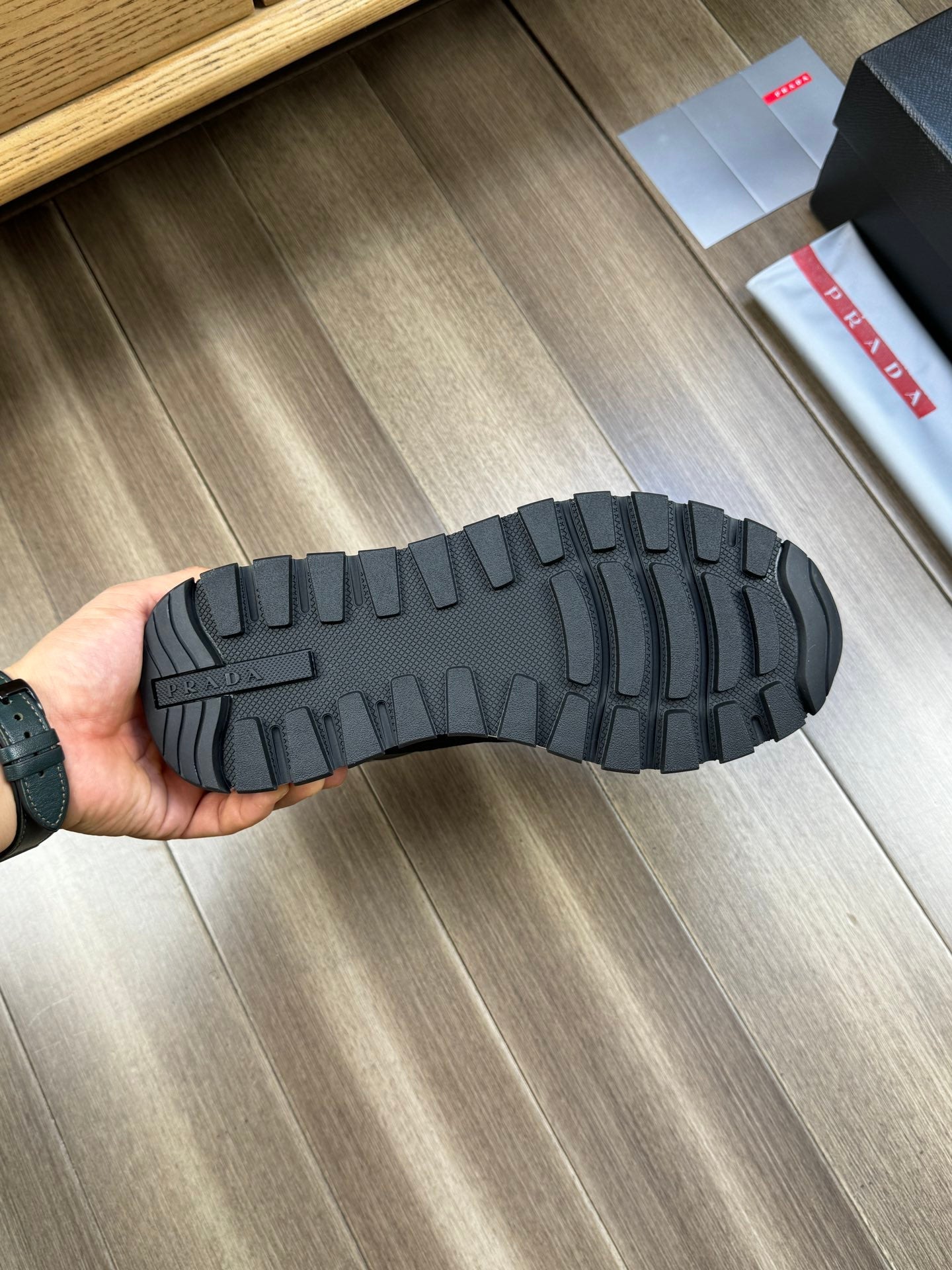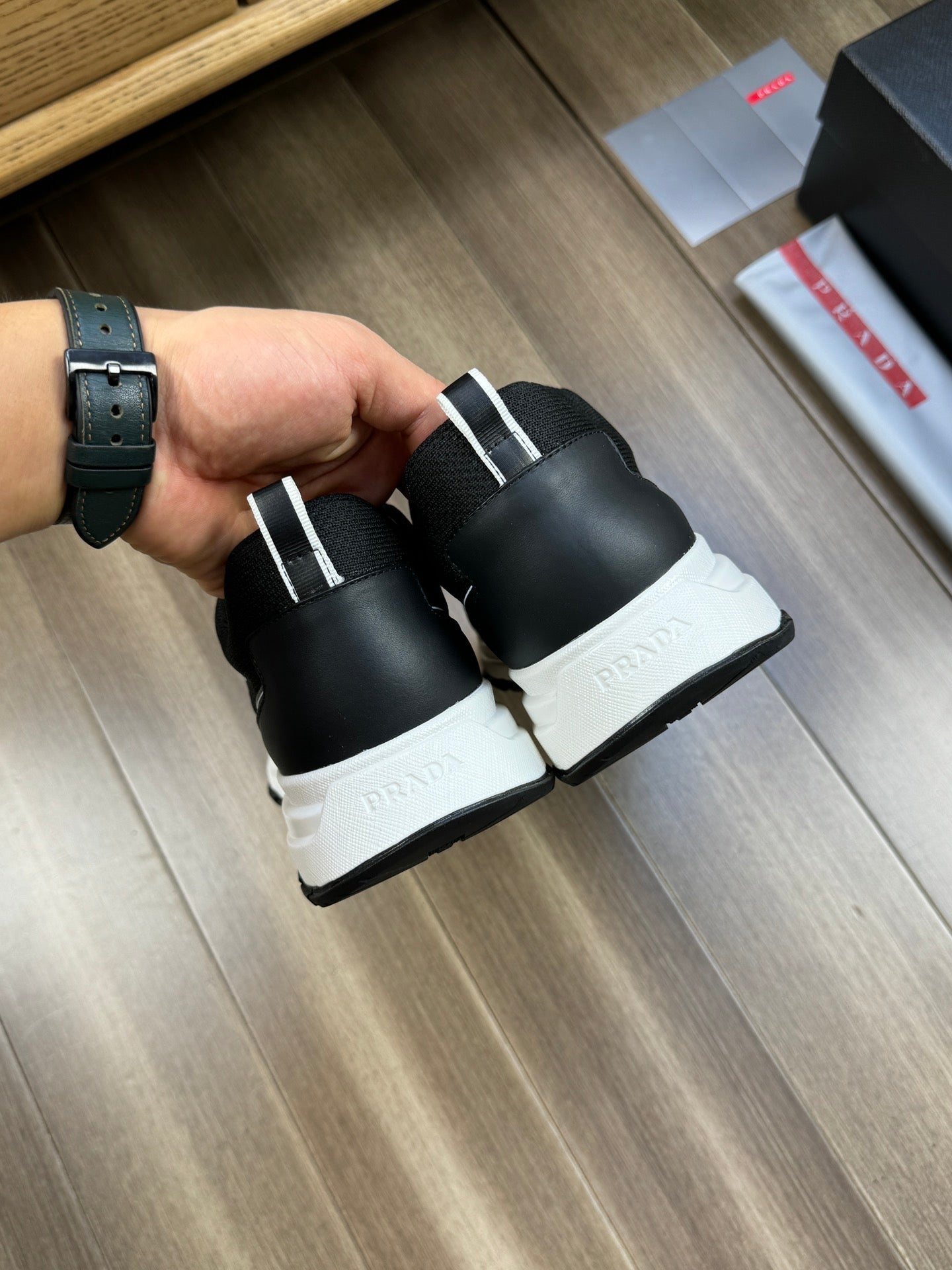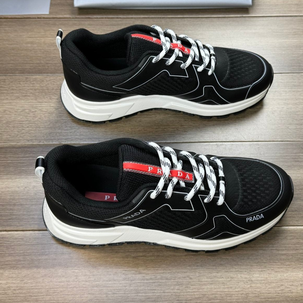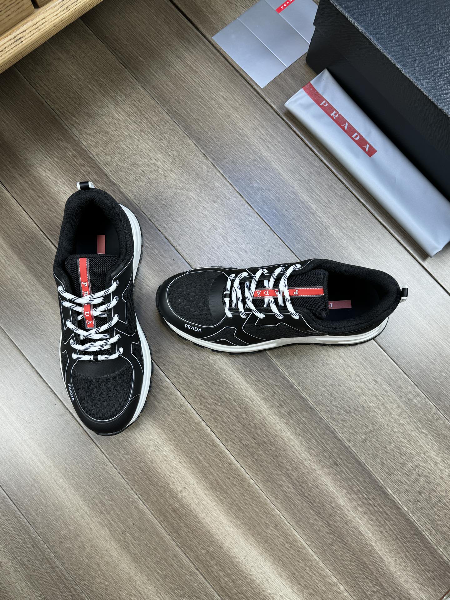 PRA SNEAKER BLACK NAPPA CALFSKIN AND FLYKNIT FABRIC