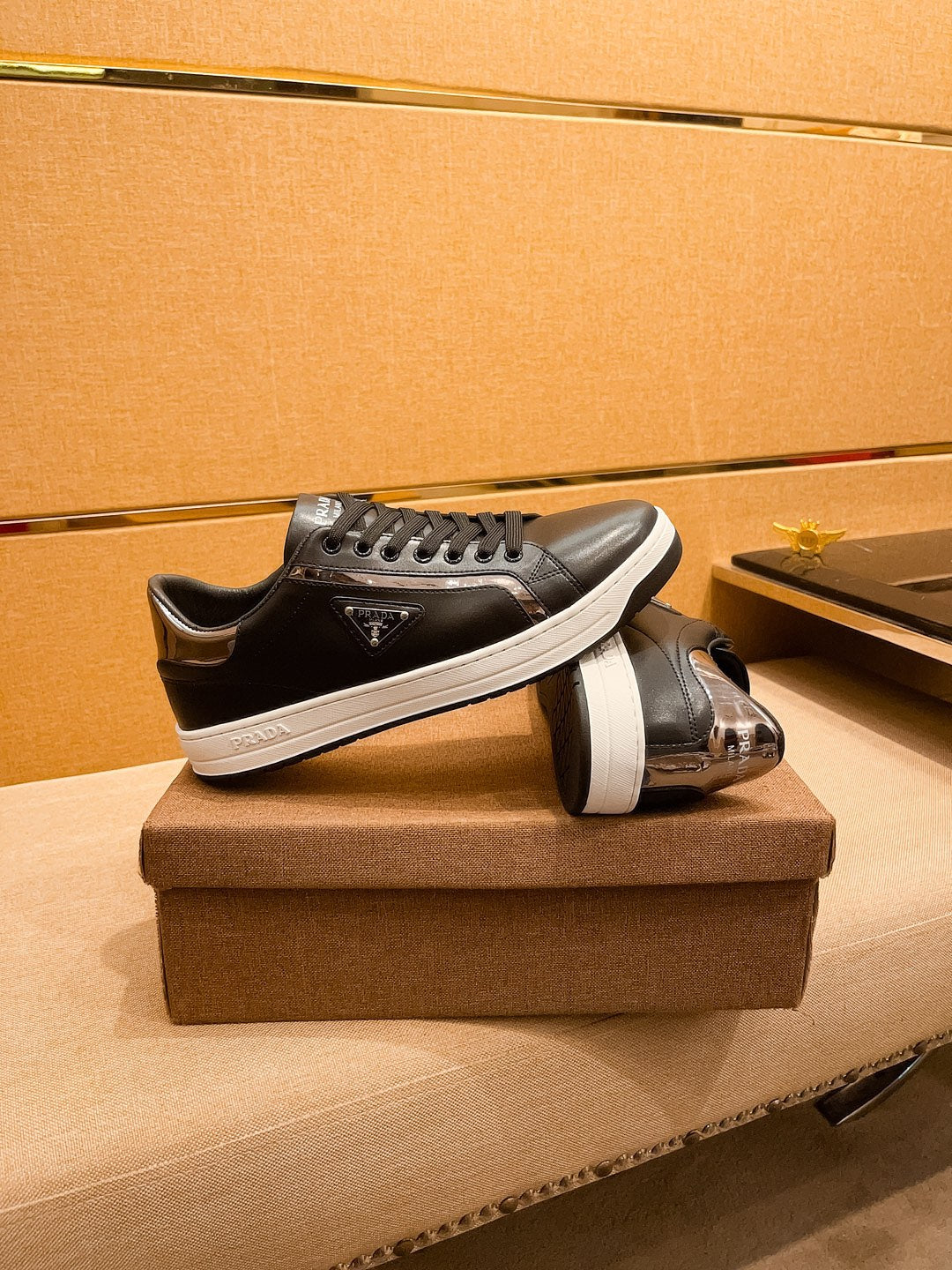 PRA SNEAKER IN BLACK CALFSKIN WITH GLOSSY GOLDEN
