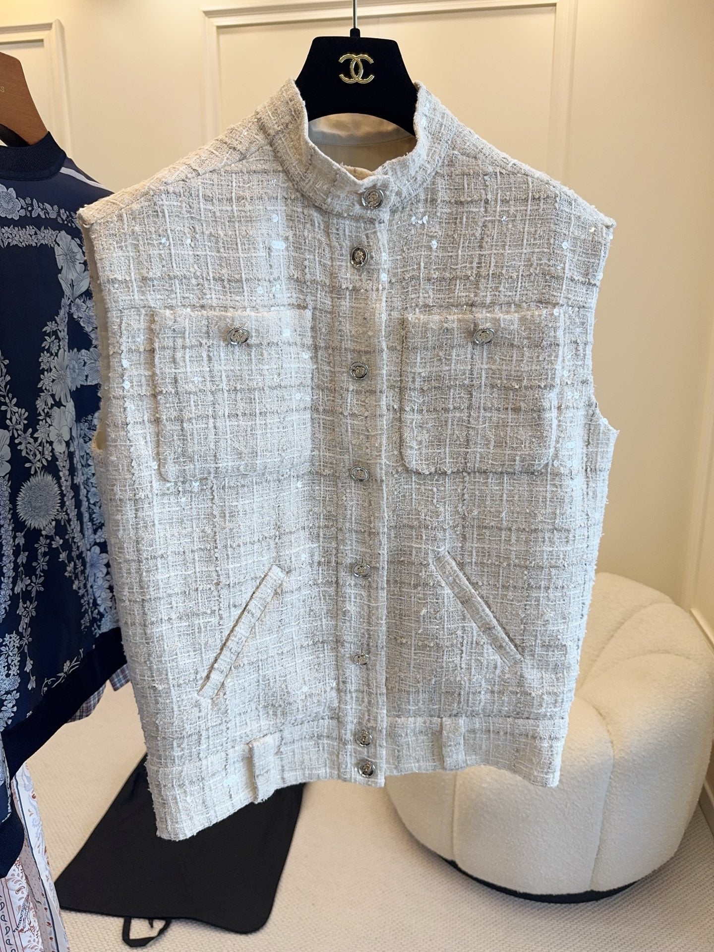 CC 2025 Vest Beige Apricot Tweed Fabric