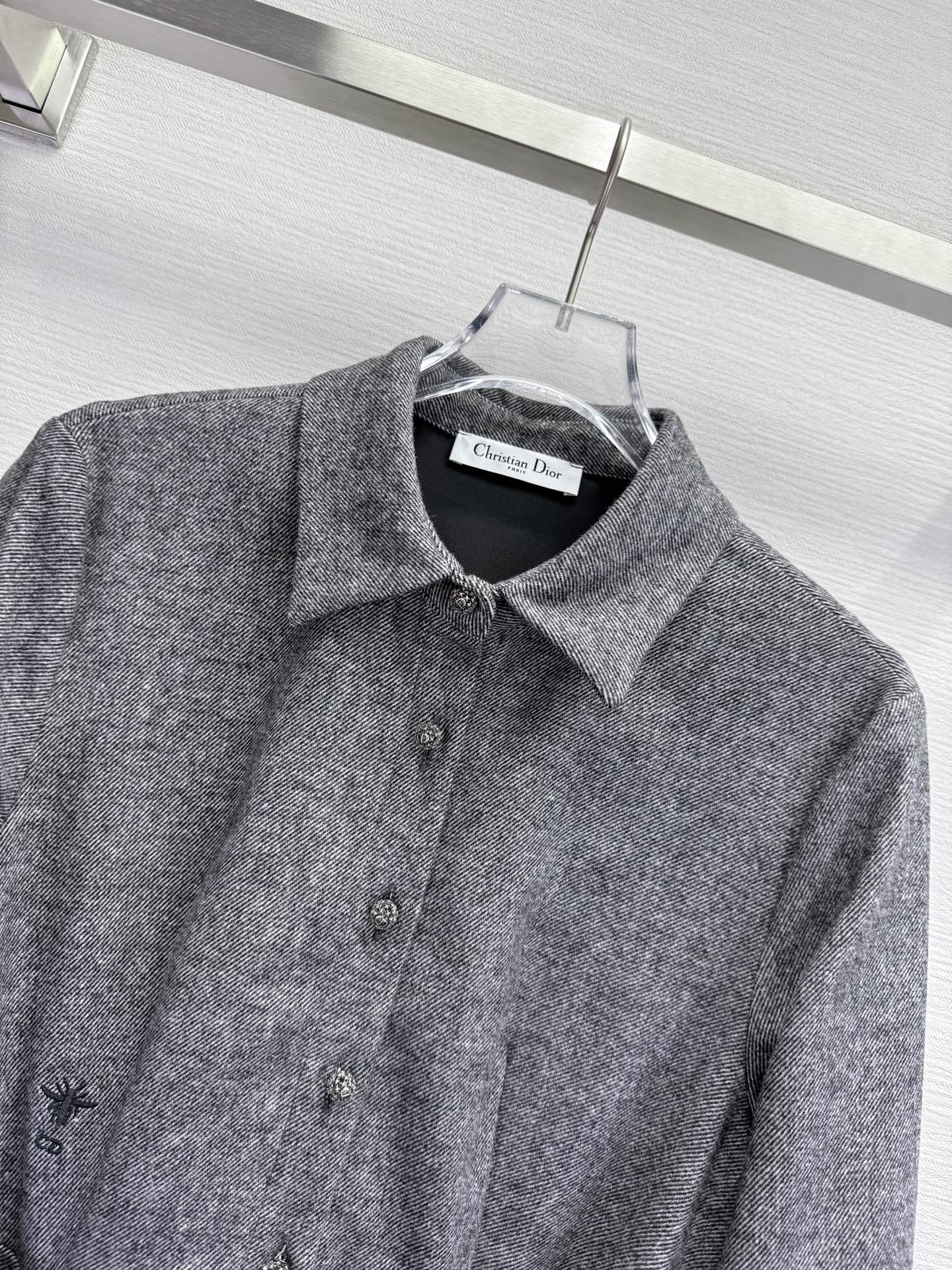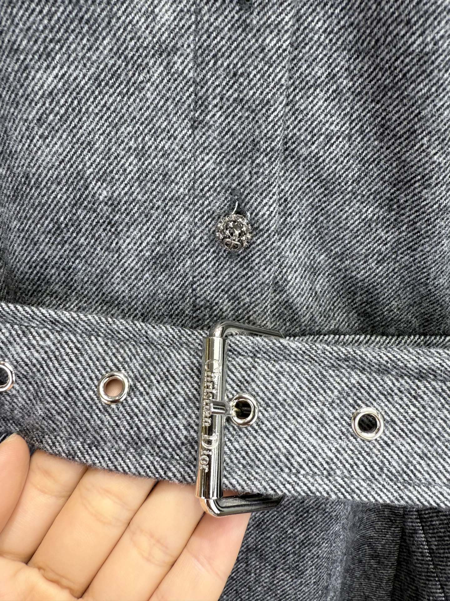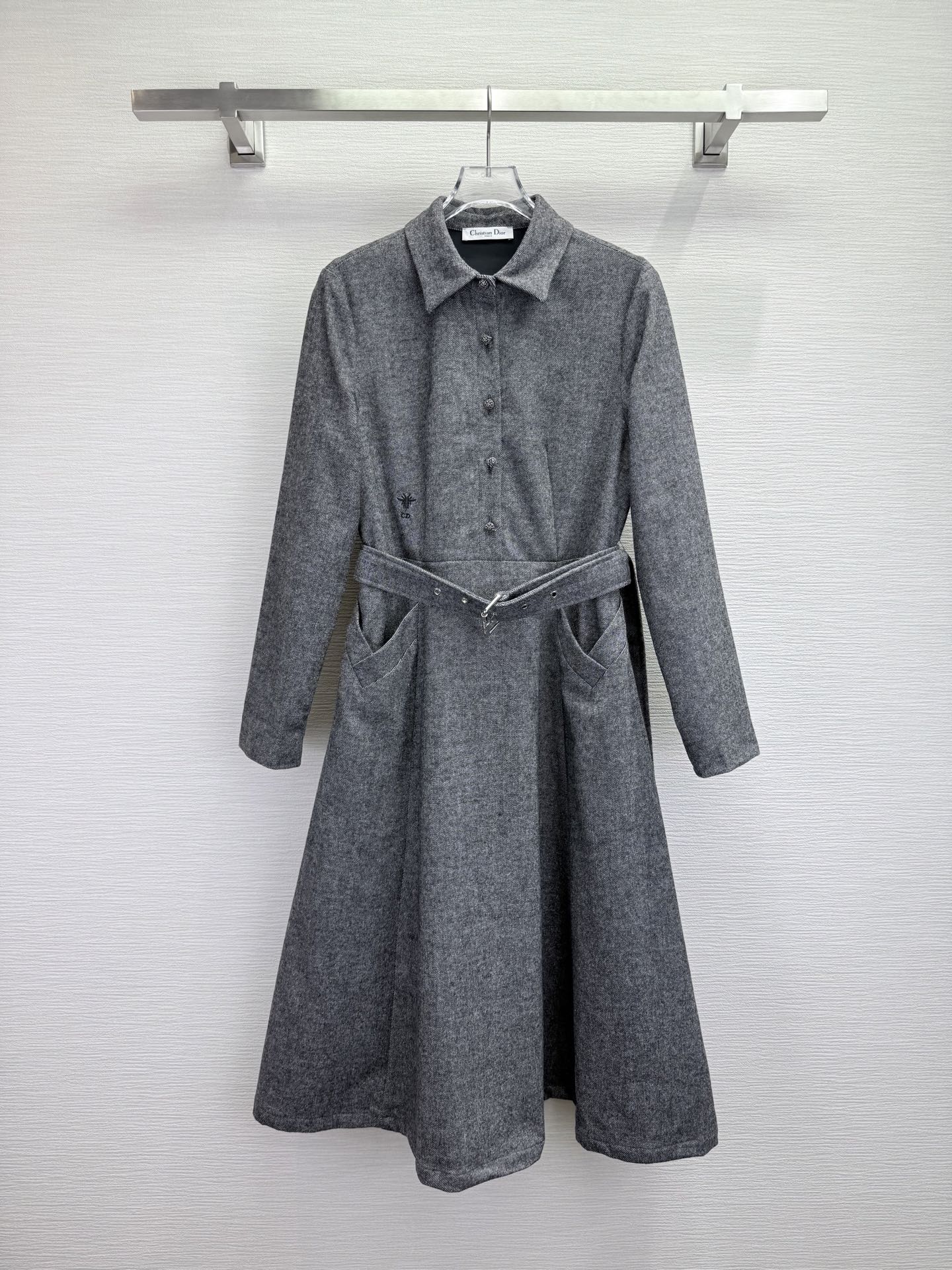 CD 25SS Long Dress With A Fabric Belt Gray Wool 306573