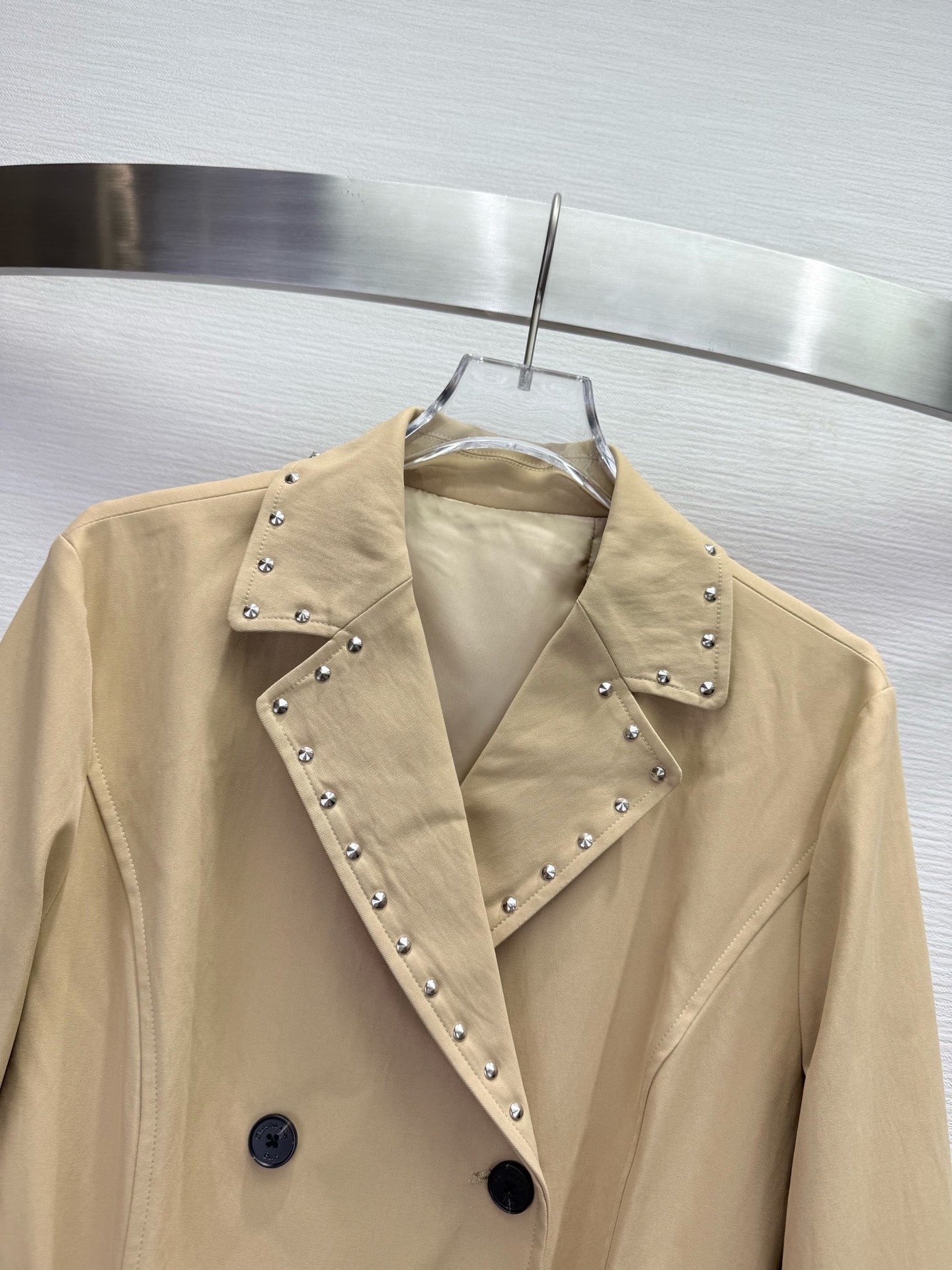 CD 25SS Long Trench Coat Collar Rivets and Bee Embroidery Beige Cotton 306540