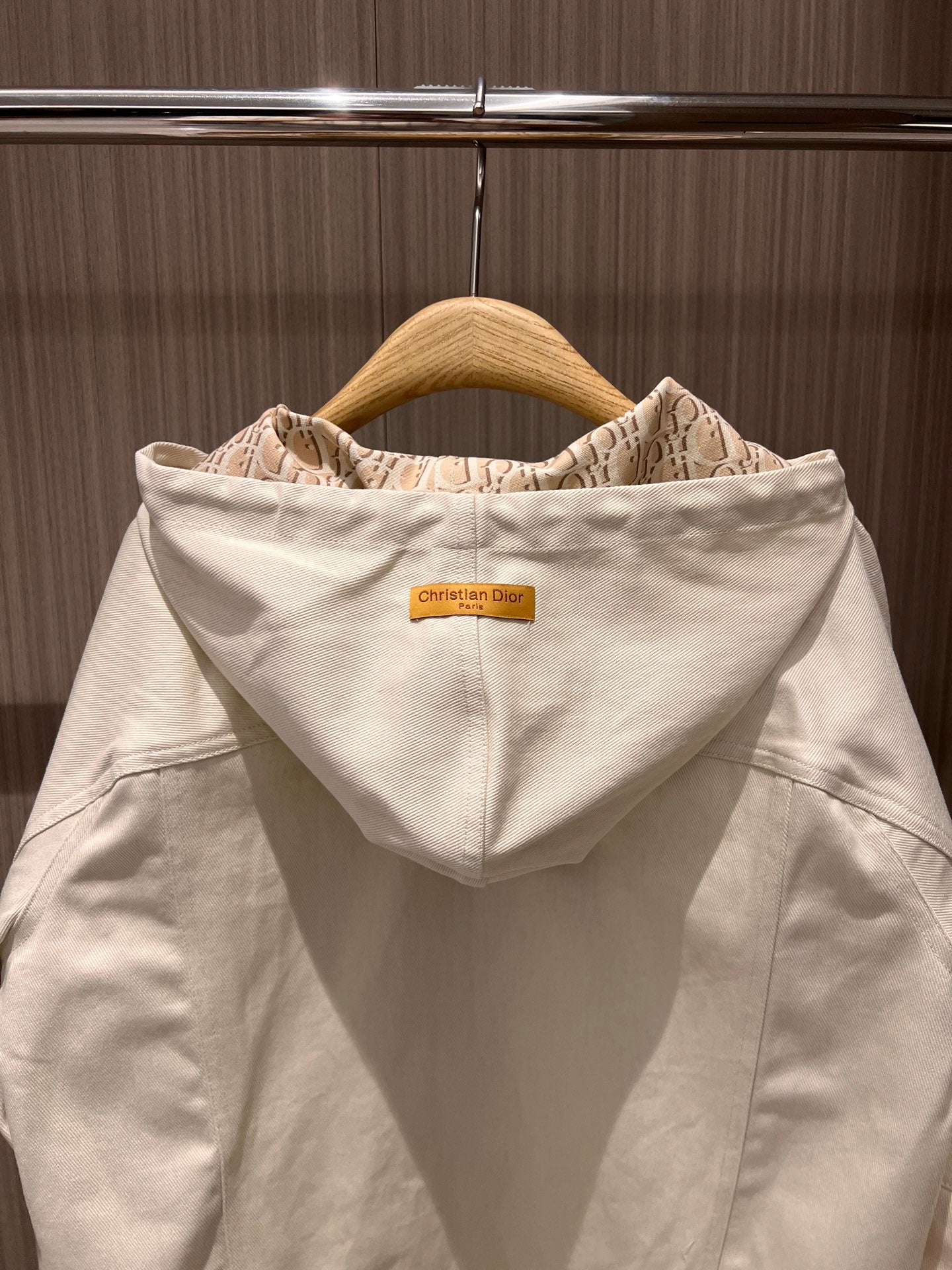 CD Hooded Denim Jacket With Monogram Lining White Beige Cotton