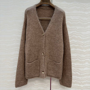 LP 25 V-neck Cardigan Brown Alpaca Wool 291829