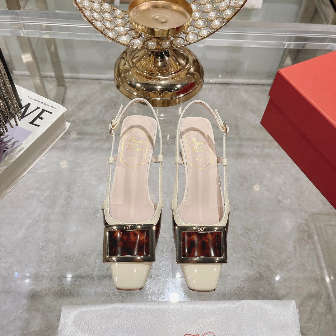 Belle Viv Metal Buckle Slingback Pumps 45 White Patent Leather