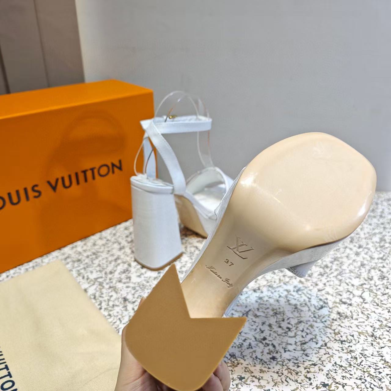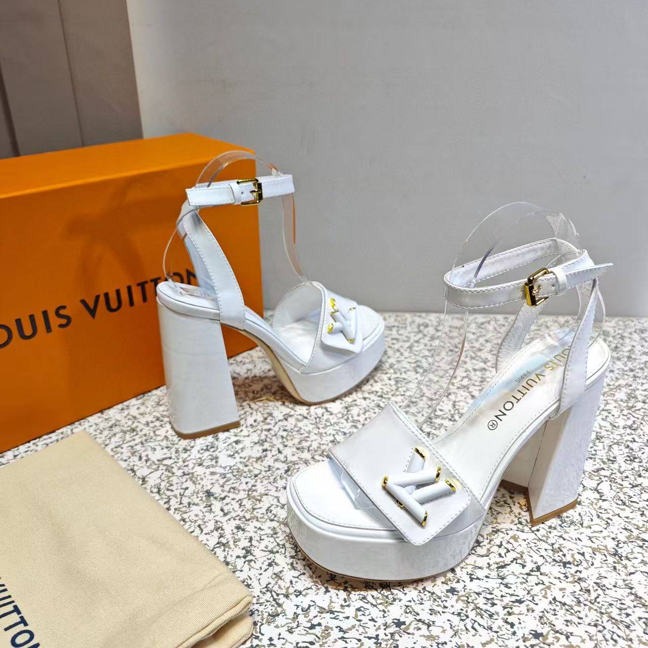 LV Shake Sandals 11cm High Block Heel White Patent Leather
