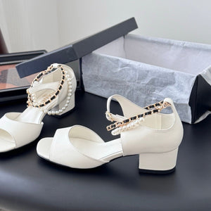 CC 25B Mary Janes 55mm High Heel Pearl Strap White Sheepskin