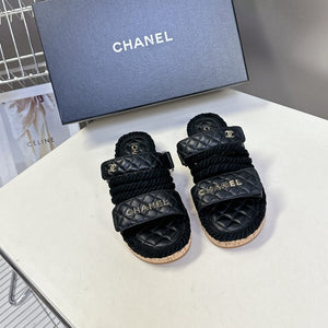 CC 25 Sandals Black Rope and Sheepskin 473366