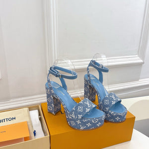 LV Blue Monogram Denim Strap Platform 110mm Sandals