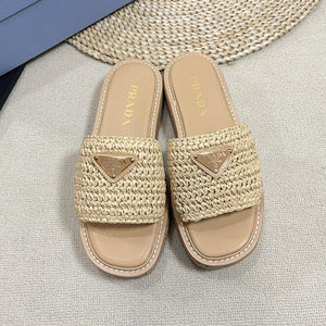 Crochet Flatform Slides 40 Lightweight Cork Sole Beige