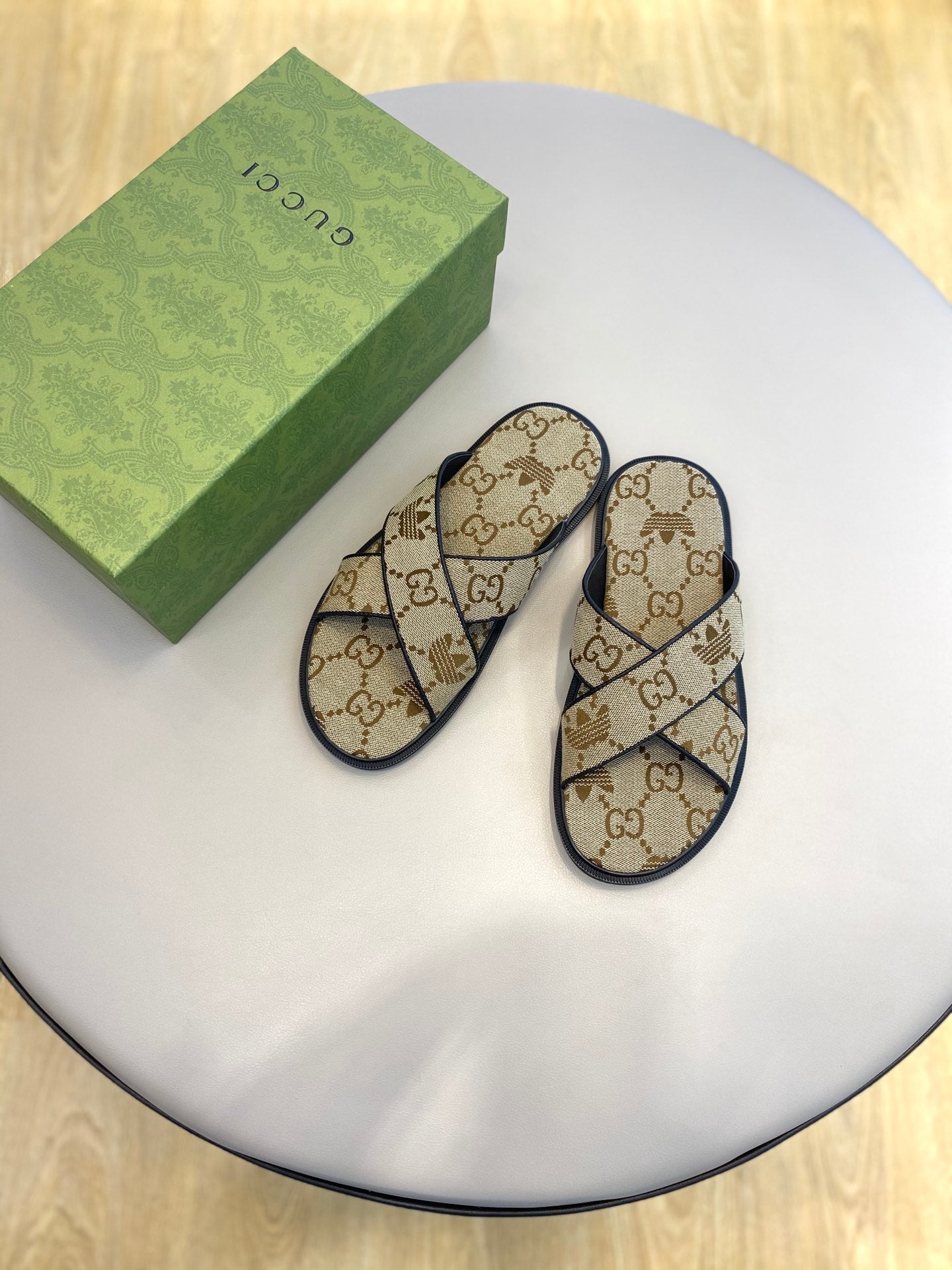 GG x Adidas Men's Sandals Slide Brown Canvas 558910