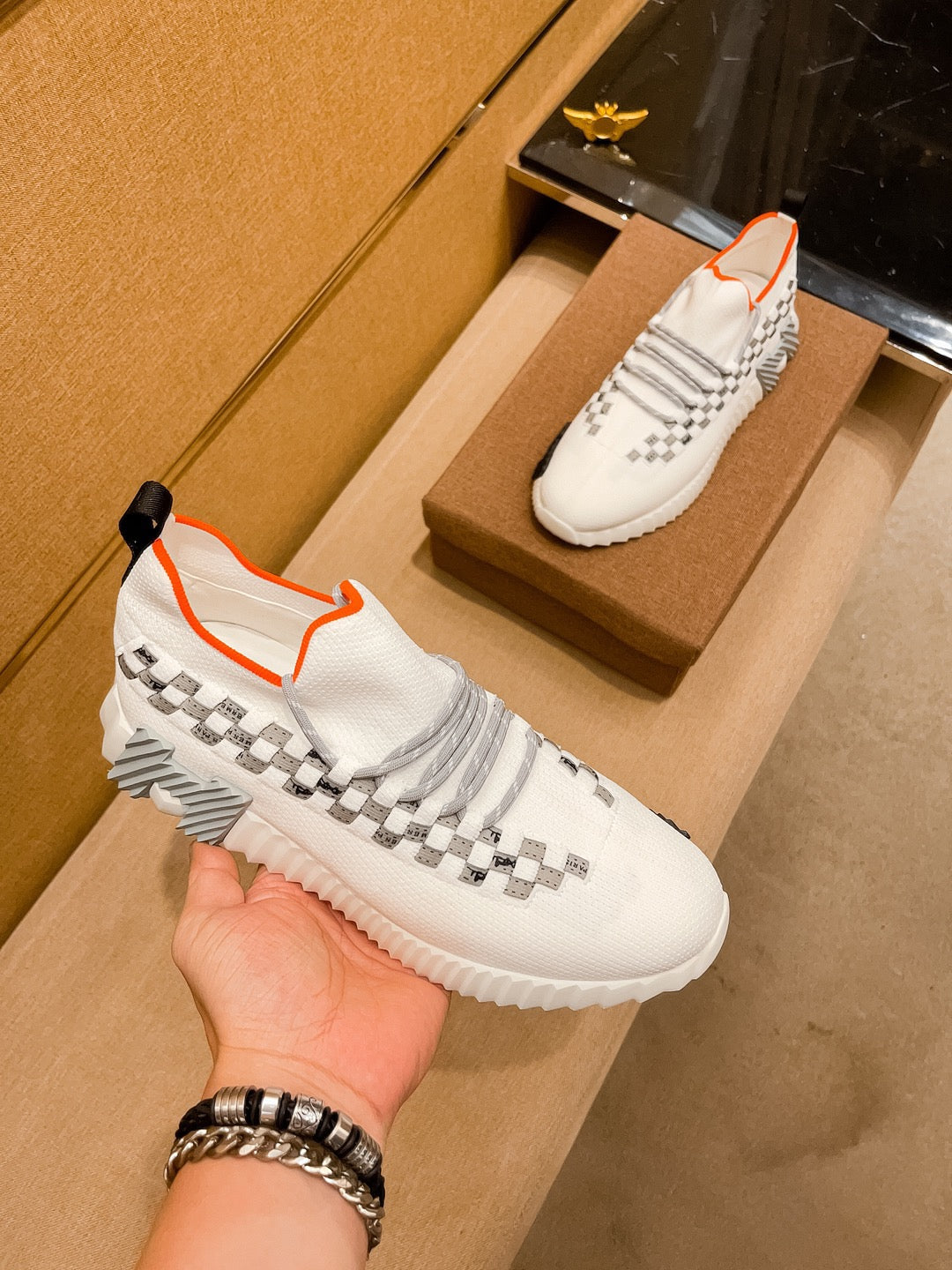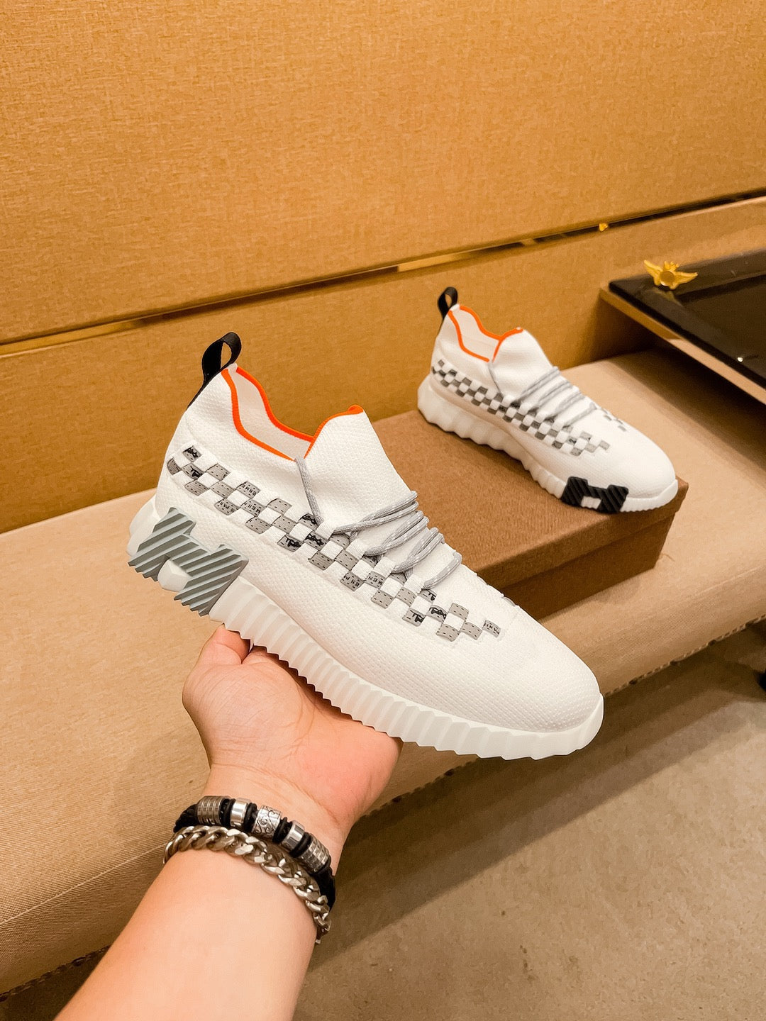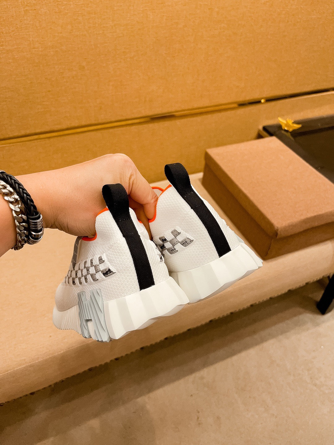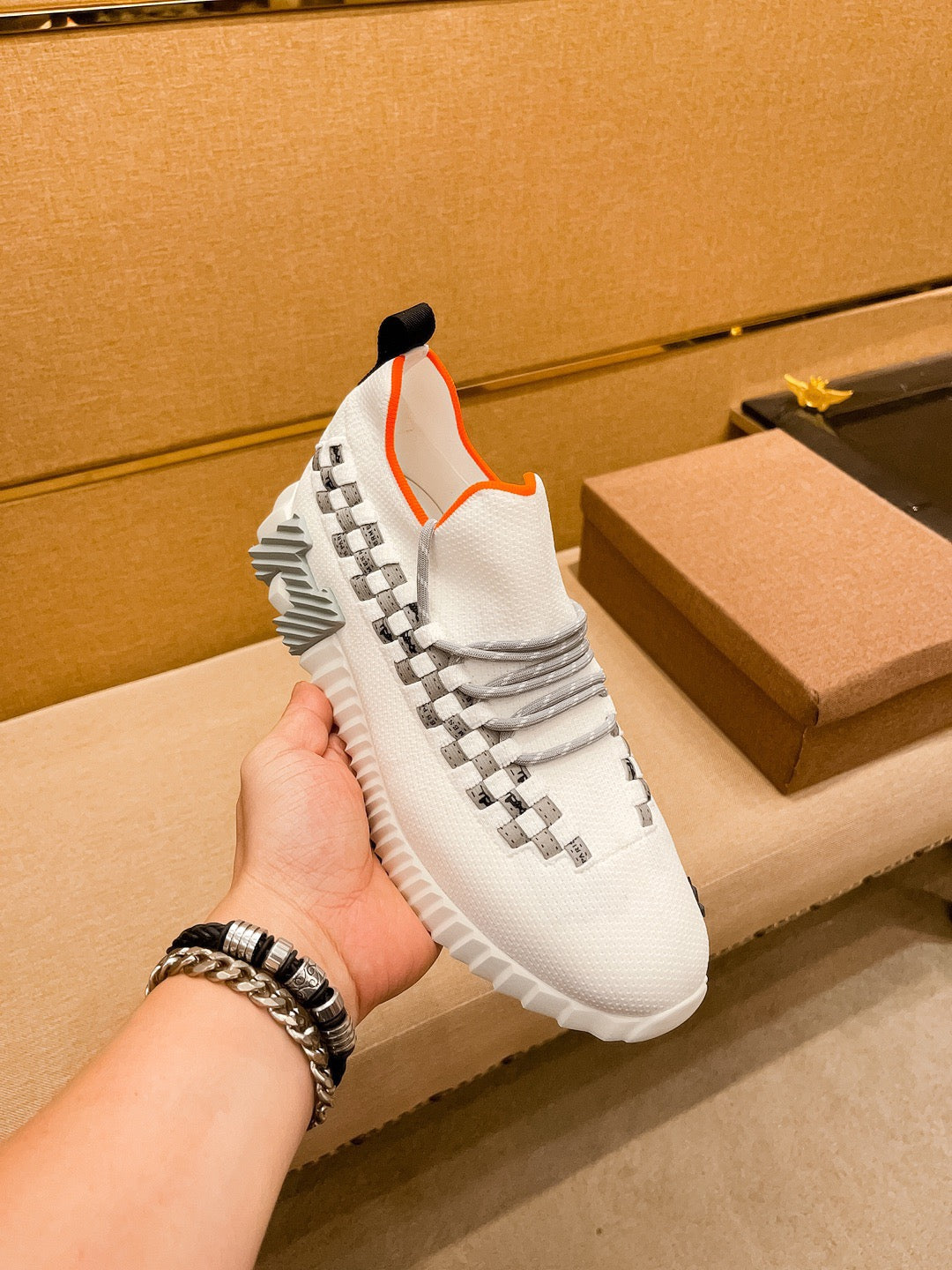 HM Men's Flex Slip-on Sneaker White Knit Cowhide 671701