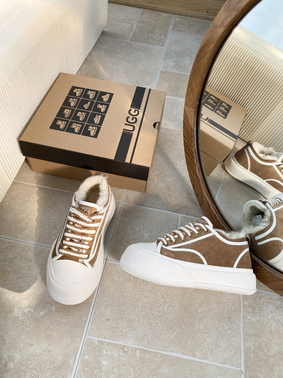 UGG Casual Sports Sneakers Brown White Suede Wool Rubber 512824